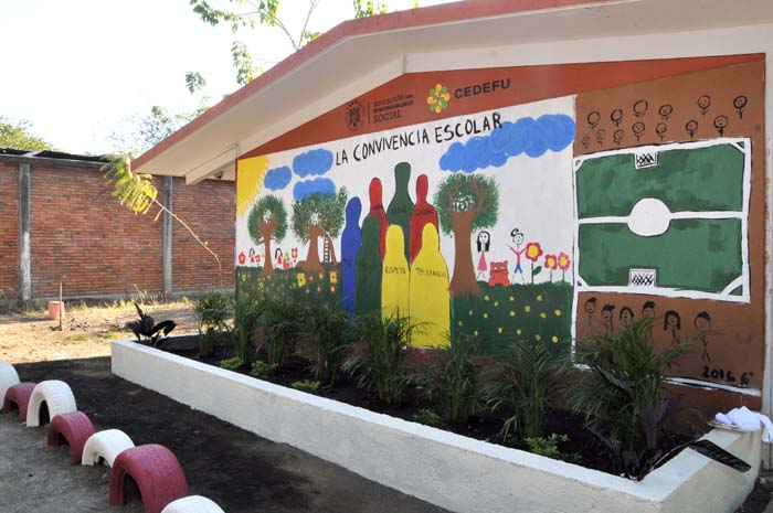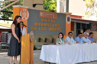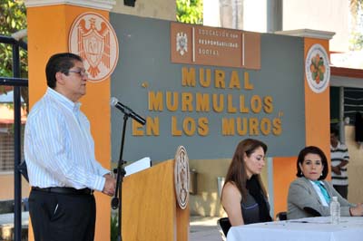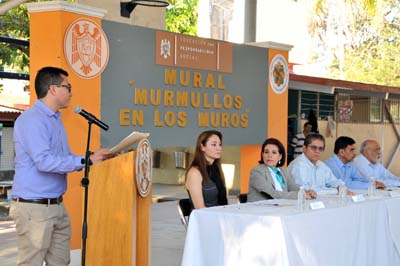 “Aquí está el primer mural del programa ‘Murmullos en los muros’, el cual se conjunta con el programa ‘Cocone Yocoya’ y DECAHUME (Desarrollando Capacidades Humanas Emprendedoras”, dijo. Por último, la directora del CEDEFU señaló que se trabajará con este programa en cada una de las diez escuelas ya definidas.