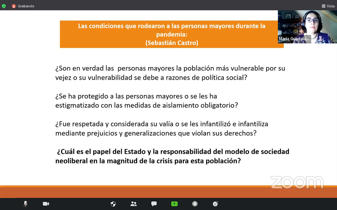 Como parte de la colaboración de integrantes de la Red Global MX Capítulo España con la Universidad de Colima, Guadalupe Jiménez Ambriz impartió la charla: “Edadismo, una pandemia por combatir”, en la que compartió algunas reflexiones y resultados de estudios sobre el proceso de envejecimiento y de las consecuencias en la salud, bienestar y derechos humanos de los adultos mayores.