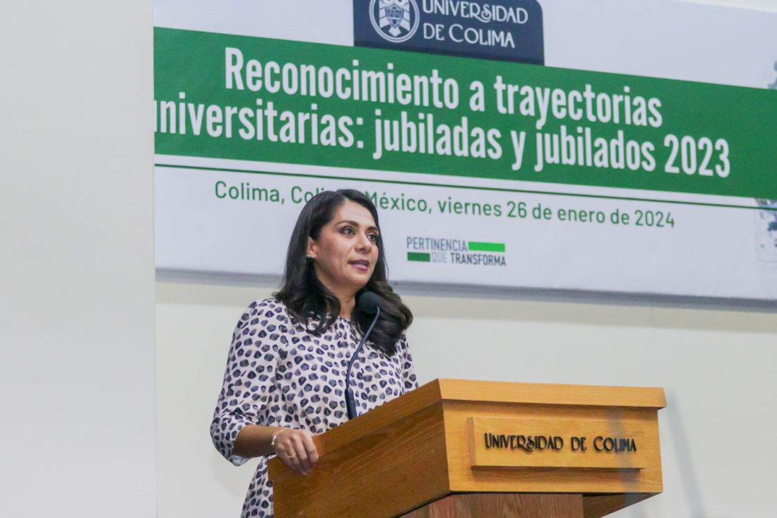 La directora general de Recursos Humanos, Priscilia Álvarez Gutiérrez, también se dirigió a los jubilados y jubiladas. “No podríamos entender la grandeza de la Universidad, llena de grandeza, consolidada y pilar del desarrollo de Colima, sin reconocer y valorar el invaluable esfuerzo, dedicación profunda y el amor incondicional que imprimió cada jubilado y jubilada a lo largo de su trayectoria laboral”.