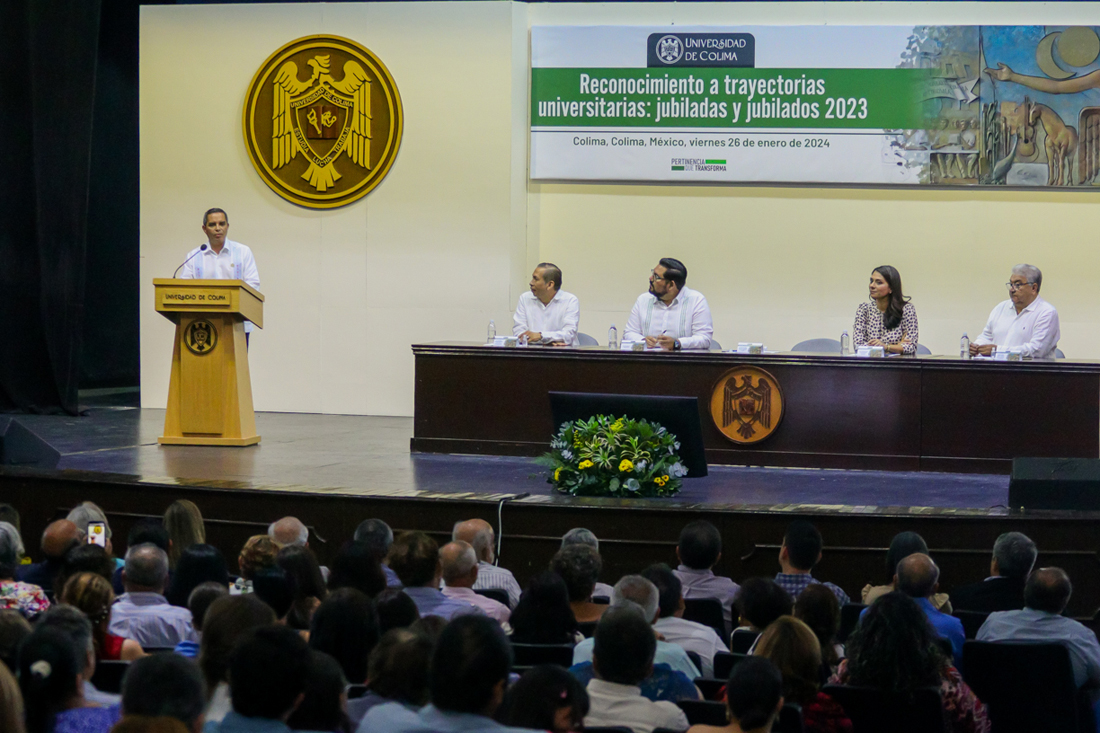 La Universidad de Colima reconoció este viernes la aportación de 102 trabajadores y trabajadoras que se jubilaron durante 2023. La ceremonia, que se realiza por primera vez, busca consolidar el sentido de comunidad y pertenencia de los trabajadores universitarios.