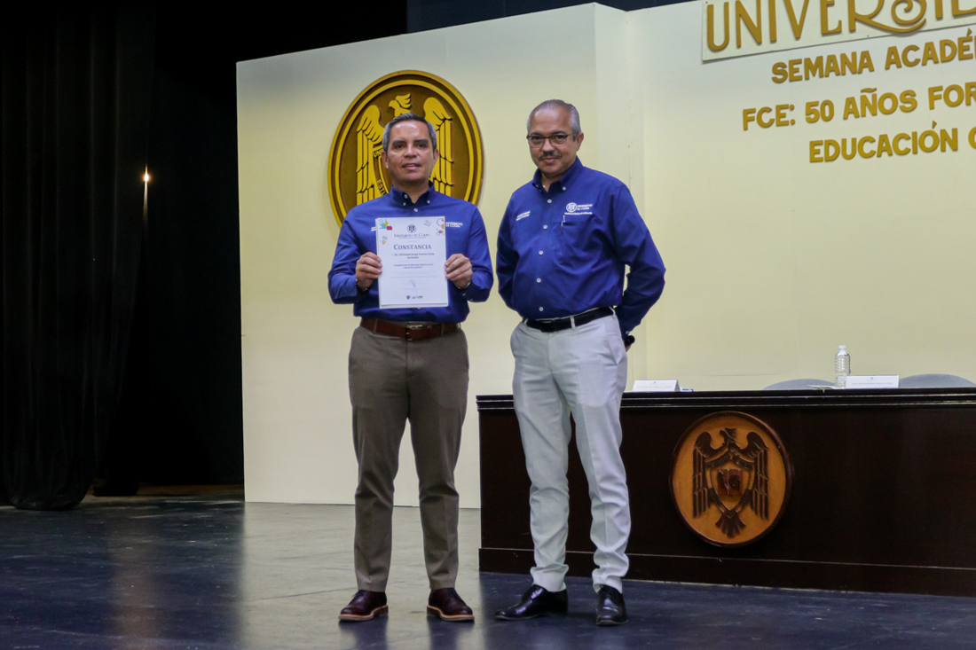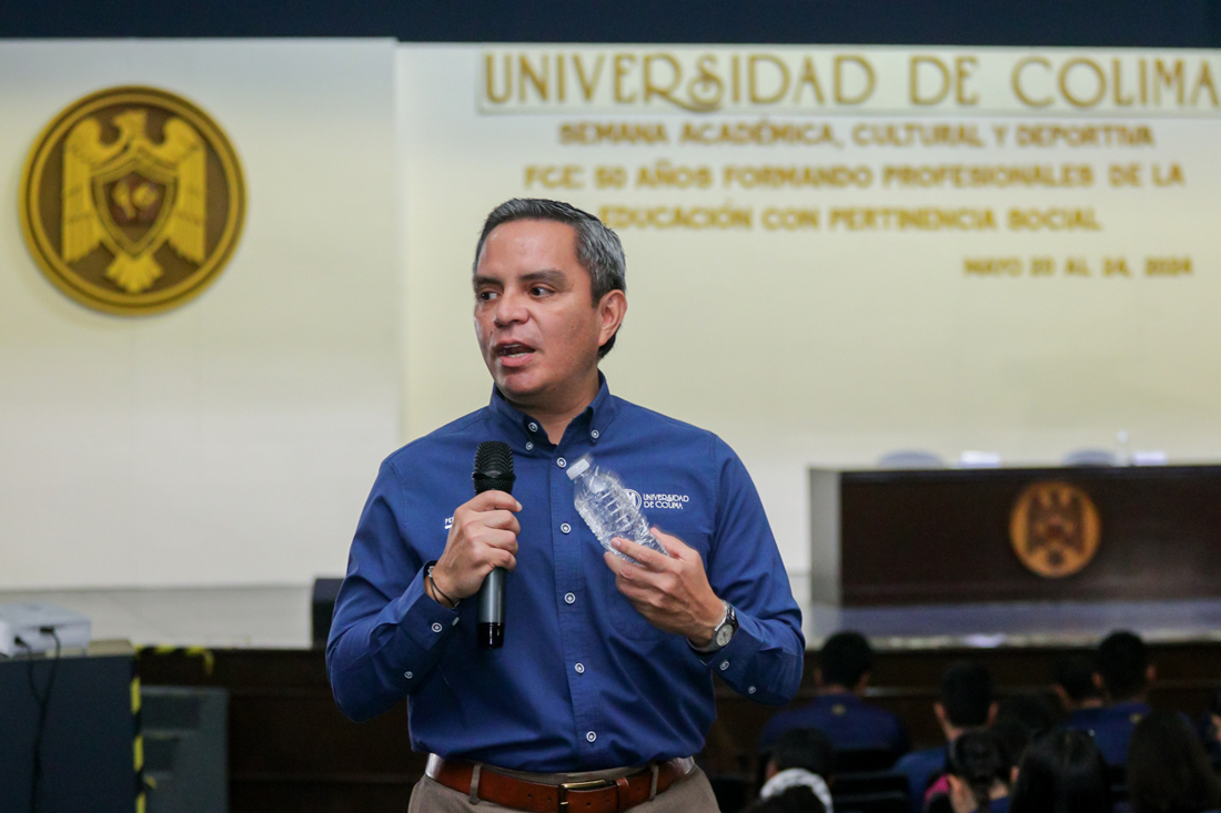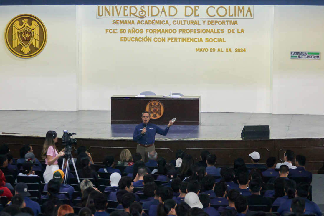 En el marco del 50 aniversario de la Facultad de Ciencias de la Educación (FCE), el rector de la Universidad de Colima (UdeC), Christian Jorge Torres Ortiz Zermeño, ofreció la conferencia: “Competencias de liderazgo efectivas en la Educación Superior”, dirigida a las y los alumnos, docentes y administrativos de este plantel. El evento se llevó a cabo en el Paraninfo Universitario.