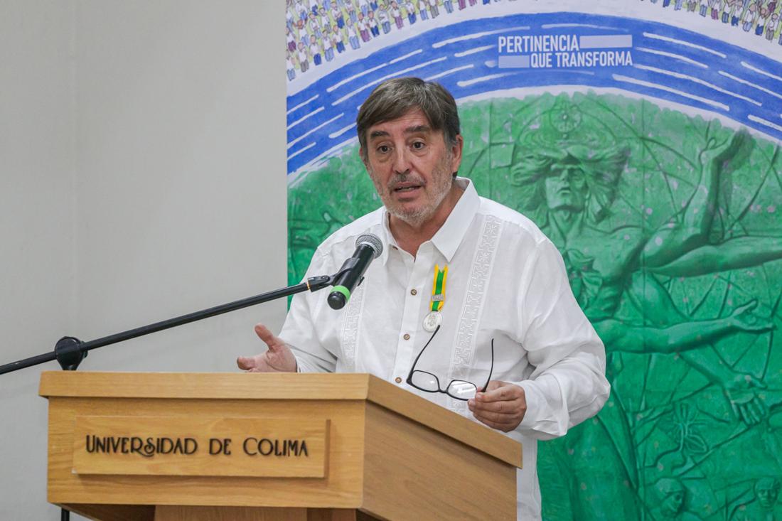Este reconocimiento, terminó, “nos orogullece y honra porque lo otorga el pueblo colimense, a través de nuestra querida Universidad de Colima, en reconocimiento a la monumental obra que ha reunido con su pluma e inspiración”.