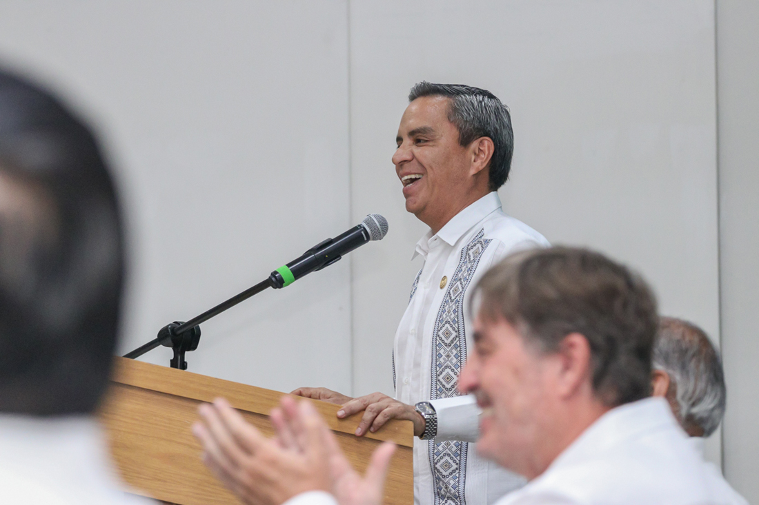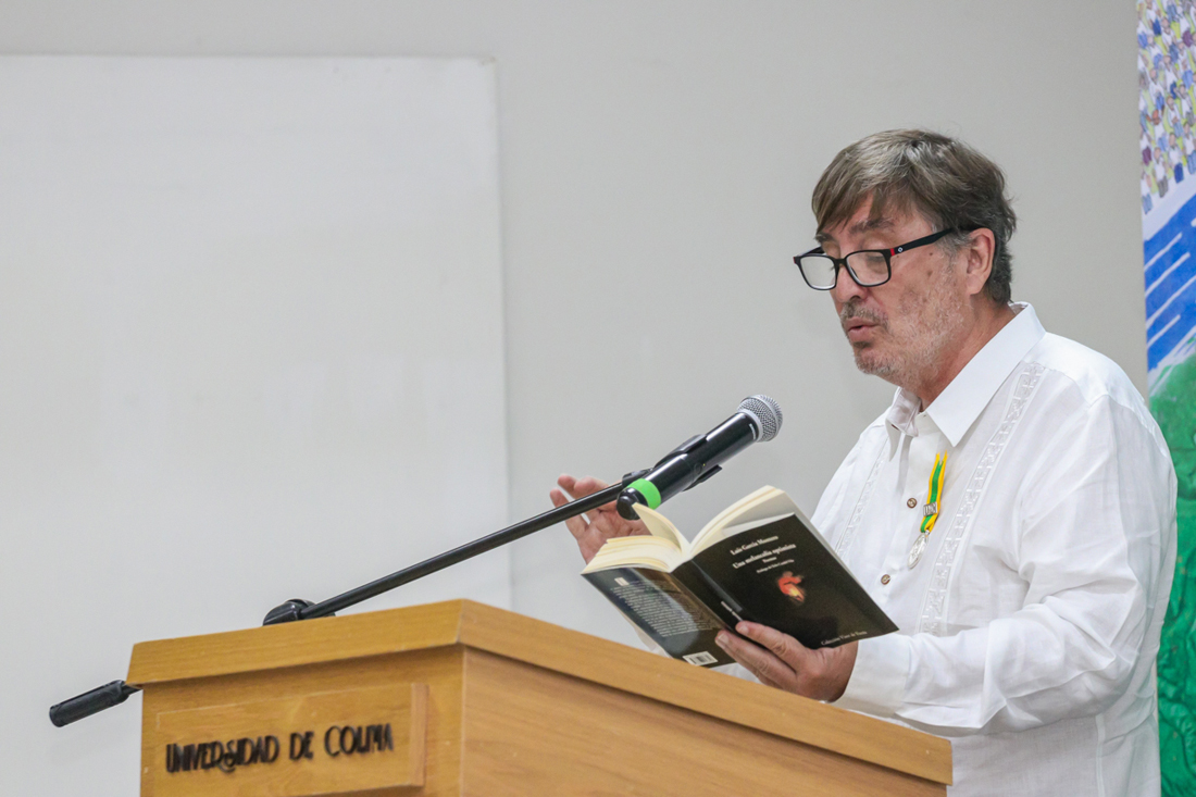 Adolfo Núñez, en nombre de Indira Vizcaíno, gobernadora de Colima, felicitó al homenajeado por este reconocimiento “a su gran aportación a la literatura; atestiguamos un acto de gran dimensión académica y de justicia a quien se ha destacado tanto en la creación literaria”.