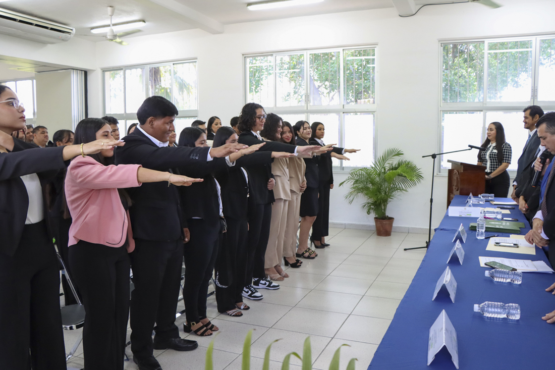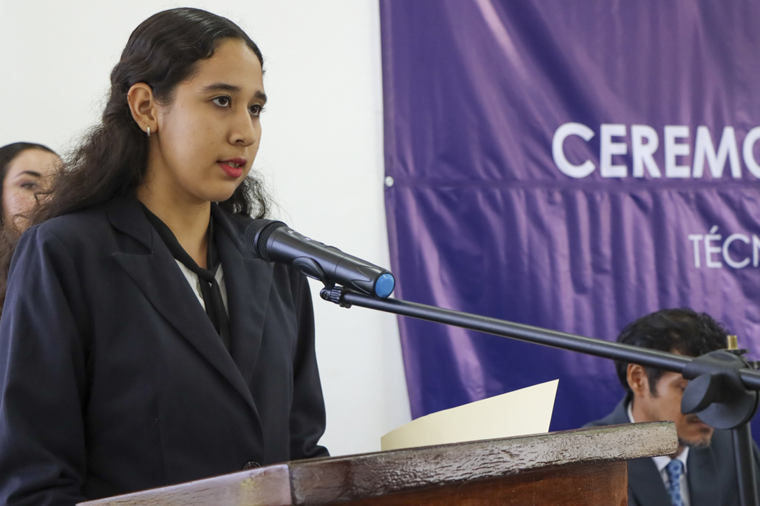 En representación de sus compañeros, Noelia Marisol Tejeda Rodríguez agradeció a las familias y docentes por el acompañamiento durante su formación. “La obtención de este título nos compromete aún más con la sociedad y el país. Cada una y cada uno de nosotros tenemos que conducirnos con los valores institucionales que nos exige el grado obtenido”.