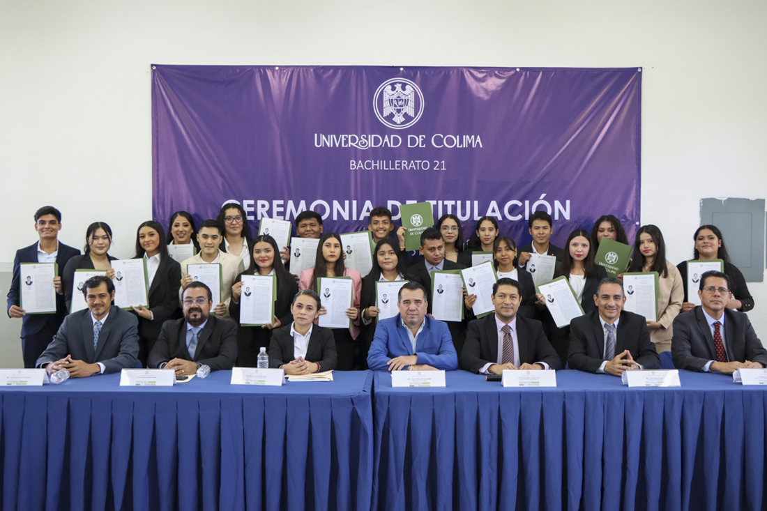En acto académico realizado en las instalaciones del plantel, 20 egresados y egresadas del Bachillerato 21, ubicado en la cabecera municipal de Armería, se titularon como Técnicas y Técnicos Analistas Químicos.