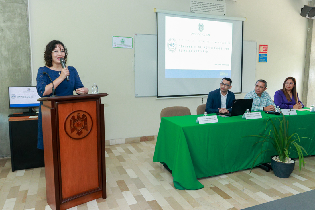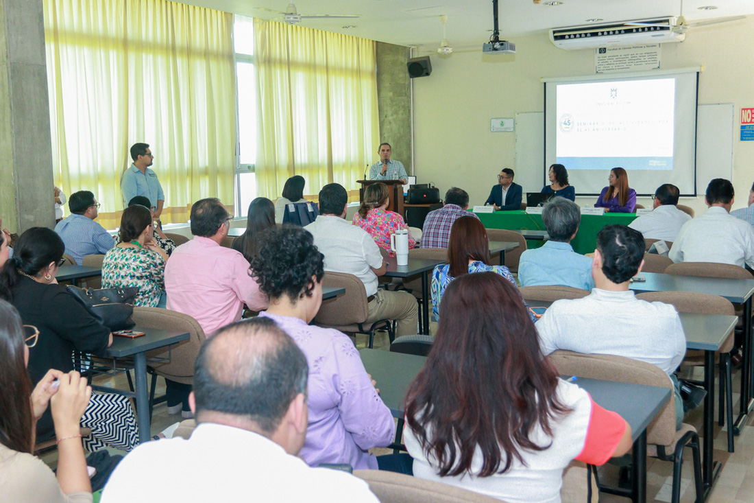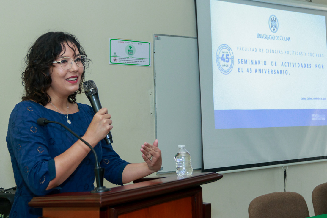 Como parte de las actividades realizadas por el 45 aniversario de creación de la Facultad de Ciencias Políticas y Sociales de la Universidad de Colima, este lunes se realizó la conferencia: “Prácticas internacionales para la internacionalización del currículum en Educación Superior”, a cargo de Ana Marcela Torres Hernández, presidenta del Consejo Mexicano de Estudios de Posgrado (COMEPO).