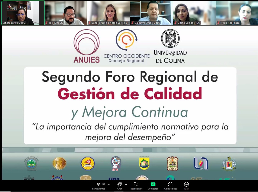 Este jueves fue inaugurado de manera virtual el segundo Foro Regional de Gestión de Calidad y Mejora Continua “La importancia del cumplimiento normativo para la mejora del desempeño”, organizado por la Red de gestión de calidad y mejora continua de la ANUIES región Centro Occidente y nuestra Casa de Estudios. Durante los días 14 y 15 de noviembre, las y los expertos compartirán sus experiencias en gestión de la calidad, la mejora regulatoria de procesos, control interno, gestión de riesgos, entre otros temas.