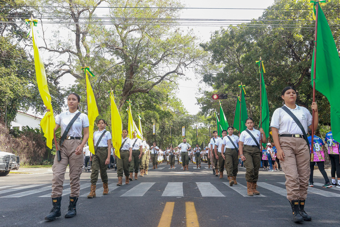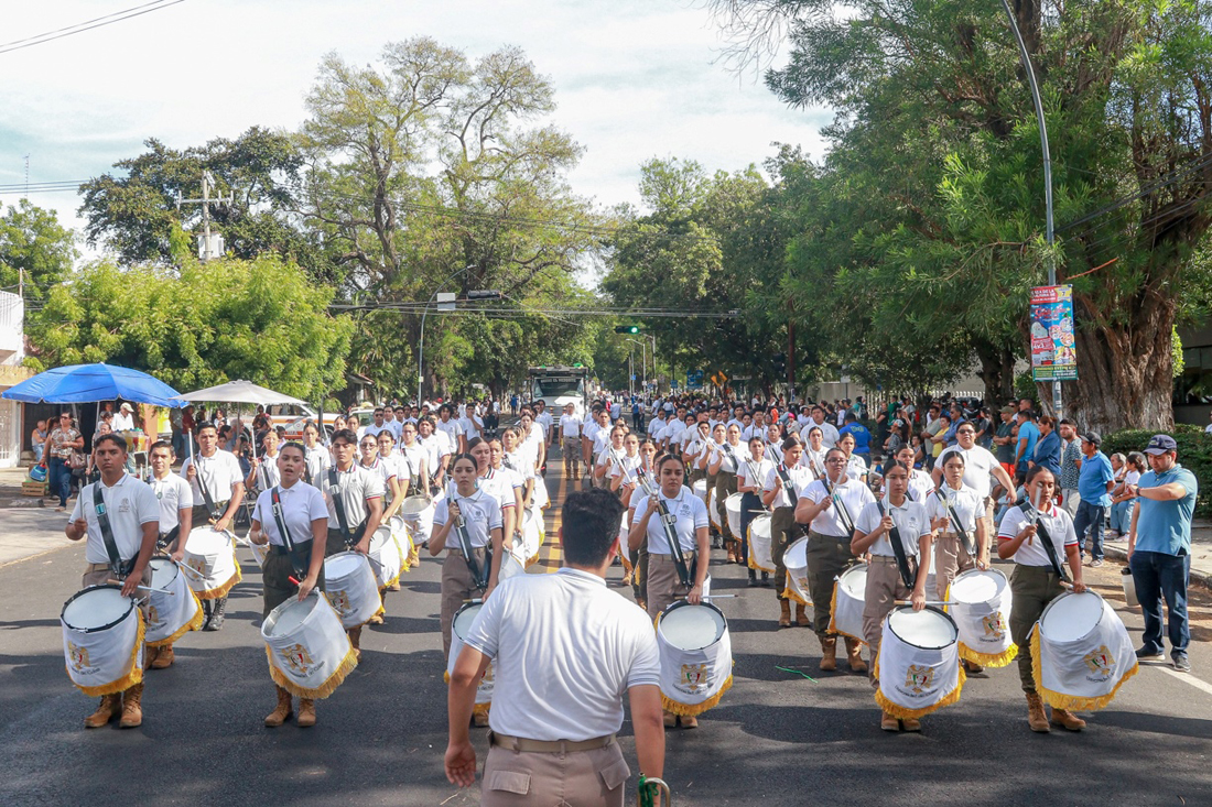 La escolta institucional abrió el contingente universitario portando los estandartes de la máxima casa de estudios, mientras la monumental Banda de Guerra de la Universidad, integrada por 124 estudiantes de distintos planteles, marcaba el paso con fuerza y precisión. Reconocida como la más grande del estado, esta banda ha representado a la institución en múltiples eventos oficiales.