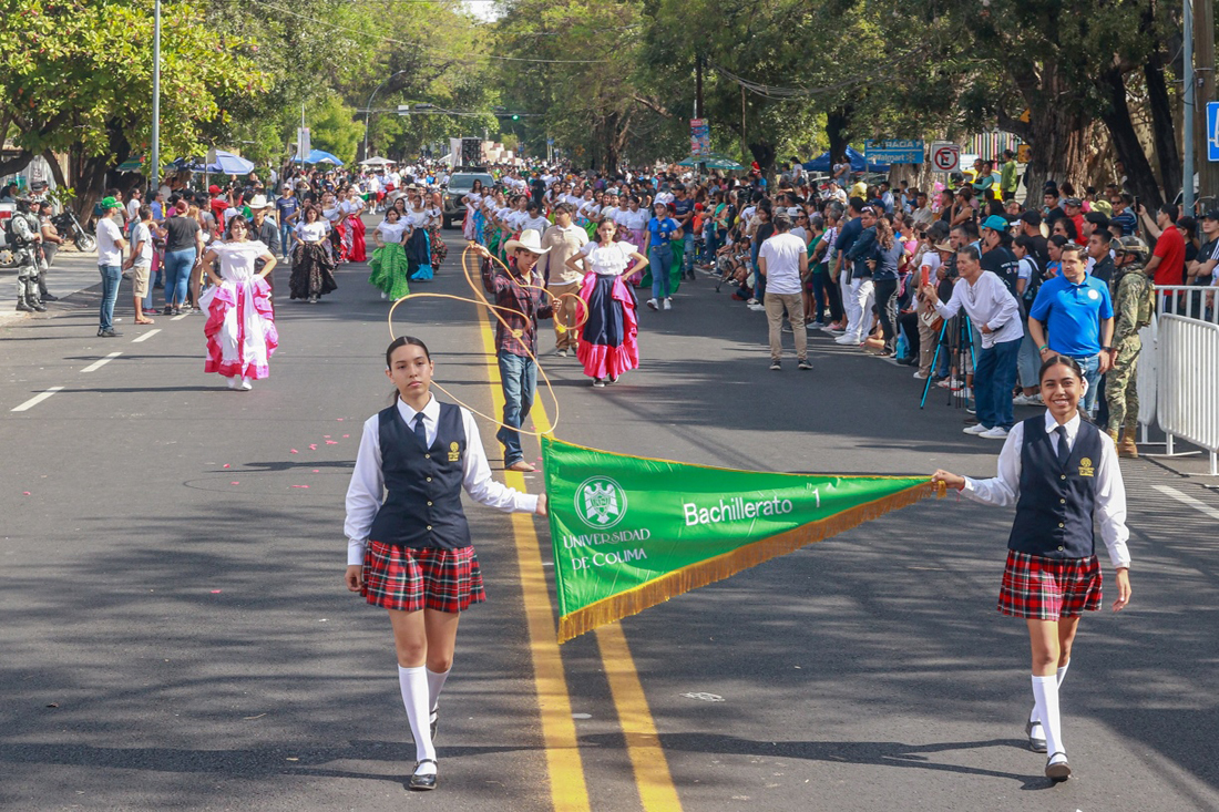A las 9 inició el desfile por la Calzada Galván, donde los contingentes llenaron de vida las calles con colores, texturas y música. La Universidad de Colima destacó con la participación de un bloque de 800 integrantes, representando a su matrícula oficial de más de 30 mil estudiantes de todos los niveles educativos, desde bachillerato hasta posgrado.