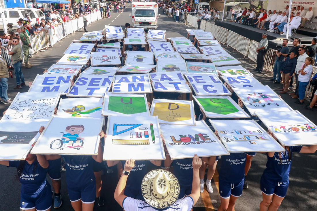El contingente cerró con la participación de la Facultad de Ciencias de la Educación, que celebró su 50 aniversario con una presentación que combinó música ranchera mexicana, danza, y un carro alegórico representativo de las tradiciones nacionales. En un emotivo gesto, estudiantes de la Licenciatura en Educación Especial interpretaron canciones en lengua de señas, promoviendo la inclusión y la igualdad.