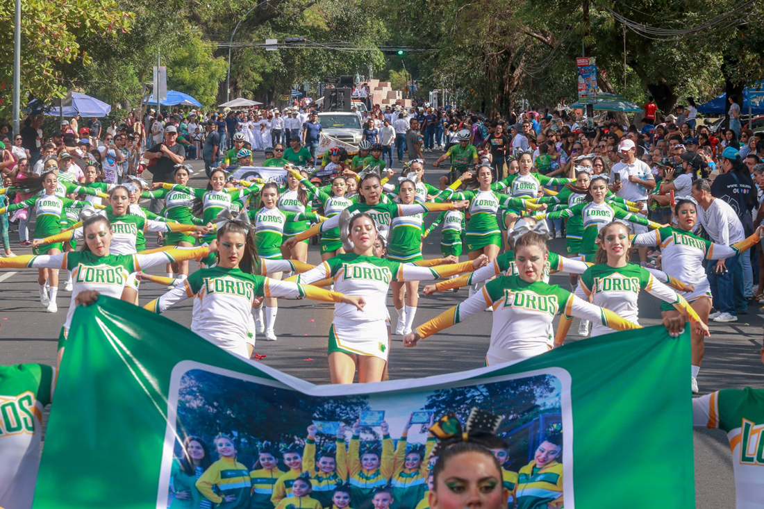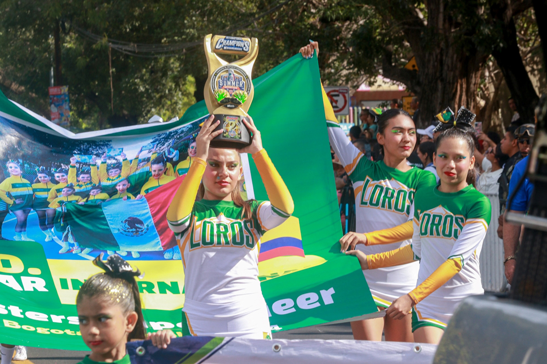 Las porristas universitarias y las mascotas oficiales, el Loro y la Lora, añadieron energía y alegría al desfile, reafirmando el compromiso de la Universidad con la educación integral.