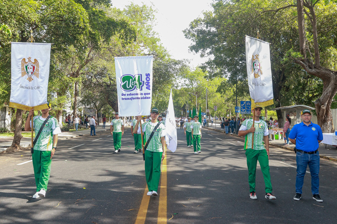 La Universidad de Colima se convirtió en una de las protagonistas del desfile gimnástico-deportivo realizado este 20 de noviembre, en conmemoración del 114 aniversario de la Revolución Mexicana. Destacó por su colorido, disciplina y organización, por la alegría de las y los jóvenes y por el tamaño de su contingente.