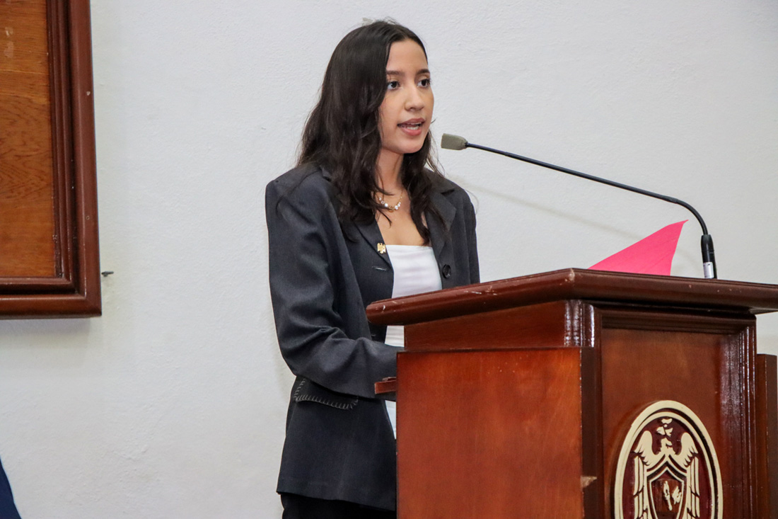 Mariela Alejandra Barajas Salazar, sinodal vocal, dirigió un mensaje a los graduados exhortándoles a ejercer su profesión con ética, responsabilidad y humildad. “Su preparación técnica es valiosa, pero será su integridad la que marque la diferencia”, afirmó.