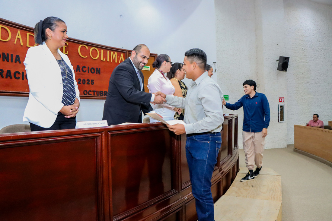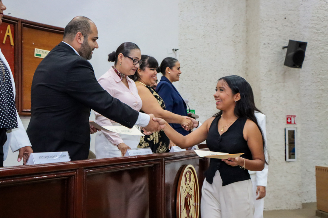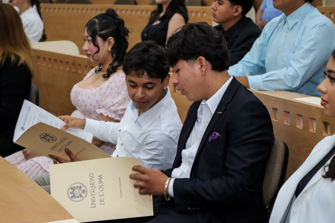 En una ceremonia realizada en el Centro de Tecnología Educativa del campus Tecomán, 63 egresados del Bachillerato 20 de la Universidad de Colima recibieron su título como técnicos profesionales, una cifra histórica para el plantel.