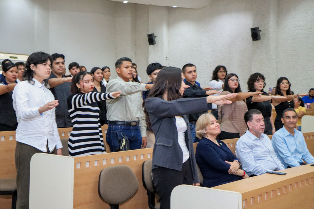 Posteriormente, las y los egresados realizaron la toma de protesta, en la que se comprometieron a ejercer su profesión al servicio de la sociedad, con estricto respeto a la ley y a los principios éticos.