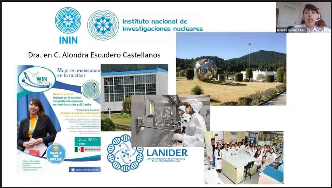 La Dra. Escudero -bióloga mexicana con posgrado en Ciencias de la Salud y doctorado en radiofármacos- compartió parte de su trayectoria académica, que incluye estancias de investigación en el Instituto Nacional de Investigaciones Nucleares (ININ), la Universidad del Estado de México y la Universidad de Berna, Suiza. Actualmente pertenece al Sistema Nacional de Investigadores del CONAHCYT (Nivel Candidato) y se desempeña como profesora a nivel licenciatura.