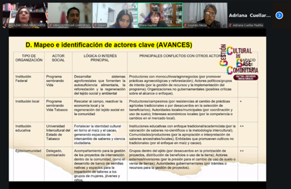 Los temas abordados en el cuarto módulo del Diplomado incluyeron el diagnóstico participativo y la mediación cultural, así como la realización de mapeos de agentes y agencias culturales, herramientas fundamentales para impulsar proyectos que respondan a las necesidades reales de las comunidades.