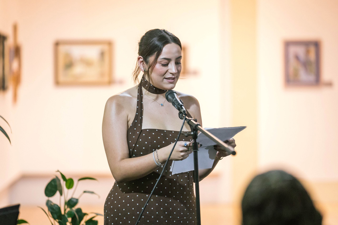Con esta exposición, también se rindió un sentido homenaje al capitán Raúl Bucio. En nombre de su familia, María José Amezcua Bucio, nieta del extrabajador universitario, agradeció este acto tan especial lleno de amor y gratitud para su abuelo. “Hoy, rodeados de su arte y de quienes lo amaron, recordamos a un hombre verdaderamente excepcional. Mi abuelo llegó a Colima siendo muy joven, recién graduado del colegio militar, fue aquí donde encontró un lugar que lo enamoró para siempre con sus paisajes, su vegetación y su gente, y aunque con el tiempo dejó el ejército, su disciplina y su sentido del deber lo acompañaron toda la vida”.