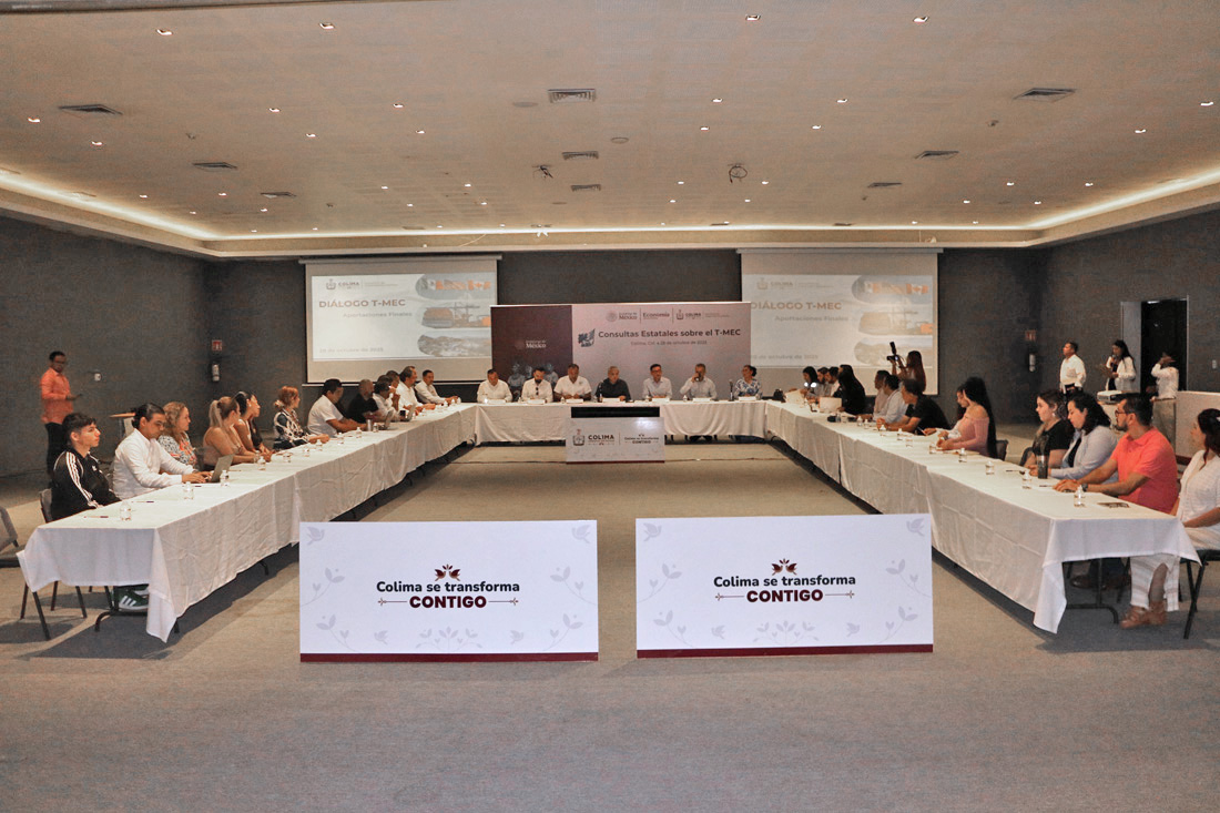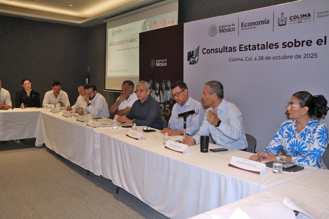 De acuerdo con la Secretaría de Economía, entre el 6 y 10 de octubre se realizaron mesas de trabajo con sectores productivos y gobiernos estatales como parte del proceso nacional de consulta del T-MEC. En Colima, el Gobierno estatal convocó al Foro Regional de Consulta con la participación de cámaras empresariales, academia y sociedad civil.