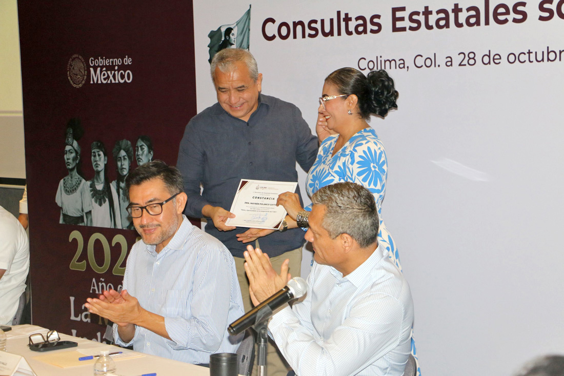 El evento contó con la participación del Lic. Alberto Uribe Camacho, coordinador regional Pacífico de la Secretaría de Economía del Gobierno de México, quien transmitió el mensaje de la dependencia federal y reafirmó el compromiso del gobierno con la integración de las voces locales al proceso nacional de consulta.
