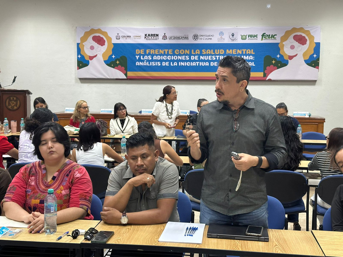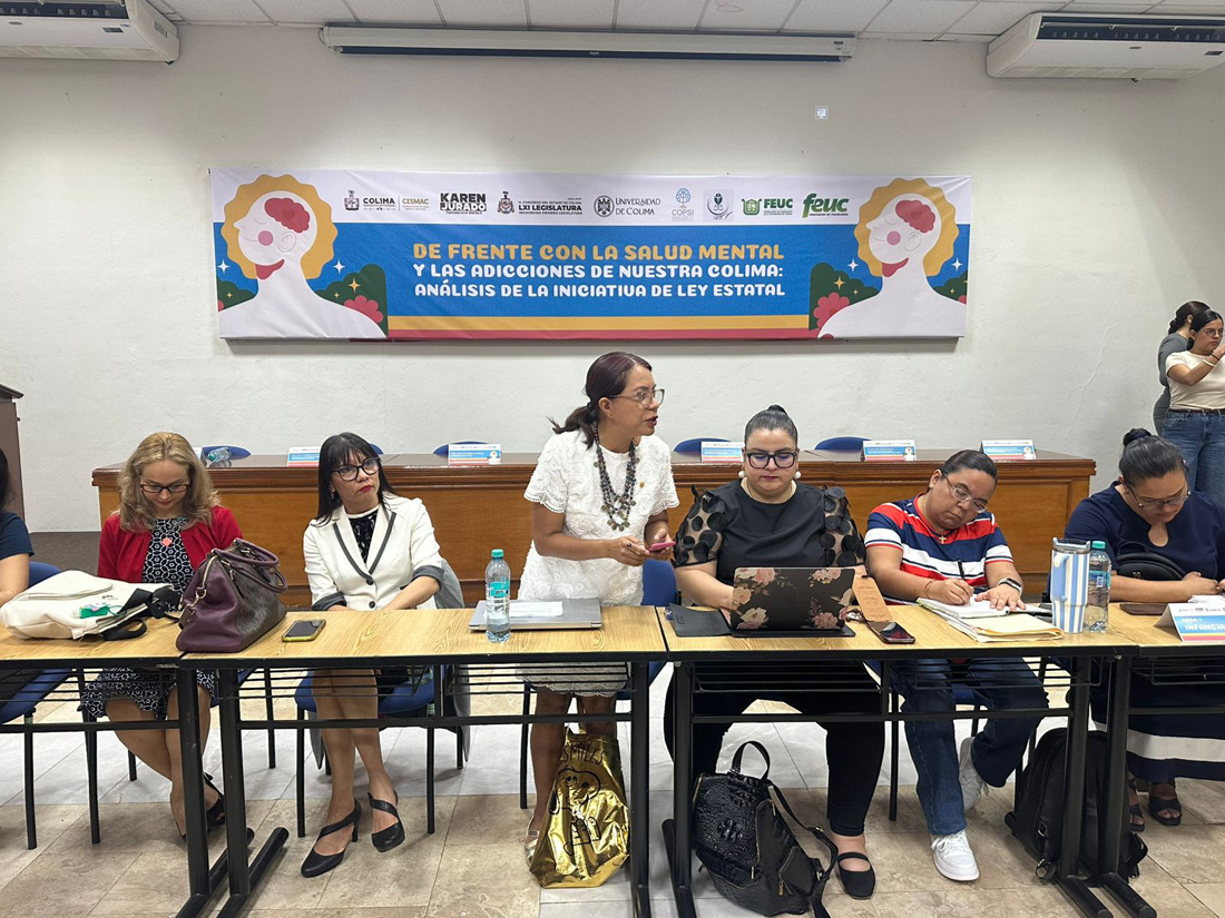 Con una amplia participación de académicas, académicos, egresados, egresadas y estudiantes de la Universidad de Colima, este martes se realizó en el Archivo Histórico y Hemeroteca de la Universidad de Colima el foro “De frente con la salud mental y las adicciones en nuestra Colima”, un espacio de diálogo ciudadano para revisar y enriquecer la iniciativa de nueva Ley Estatal en la materia, que promueve la diputada Karen Judith Jurado Escamilla, presidenta de la Comisión de Salud y Deporte del Congreso del Estado.