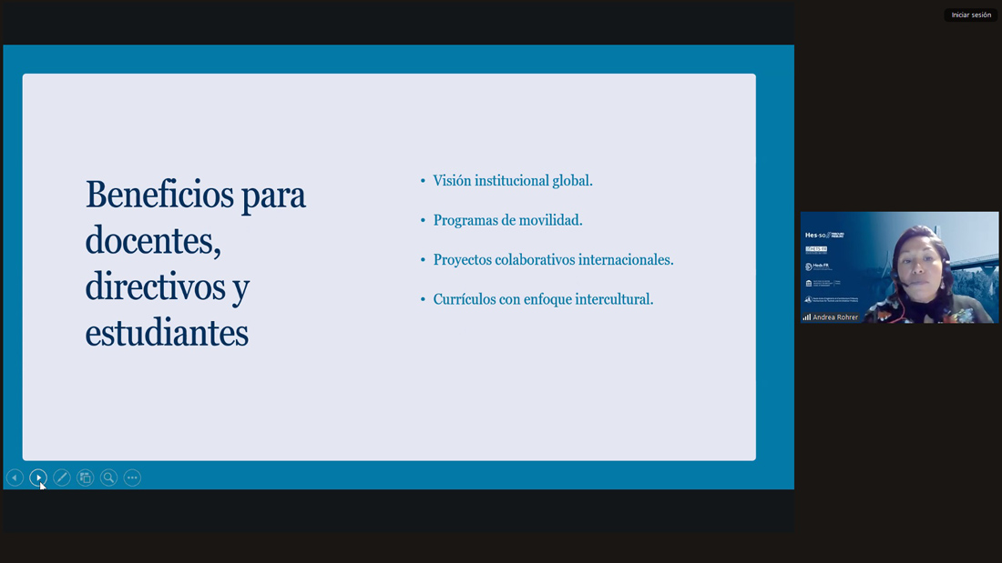 Esta semana -de manera virtual- se impartió la conferencia “Puentes hacia el futuro: la educación internacional en la gestión académica y las oportunidades en Europa”, a cargo de Andrea Rohrer, catedrática de Hes-so, Universidad de Ciencias Aplicadas y Artes de Suiza Occidental, como parte del ciclo Competencias Globales en el Aula que busca formar estudiantes ciudadanos del mundo. El ciclo es organizado por Red Global MX Capítulo Alemania y la Oficina de internacionalización y Cooperación Académica de la Universidad de Colima.