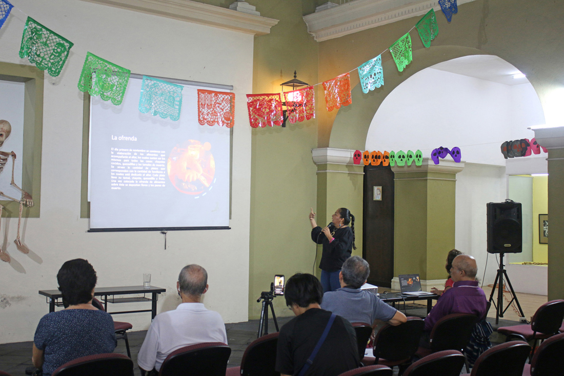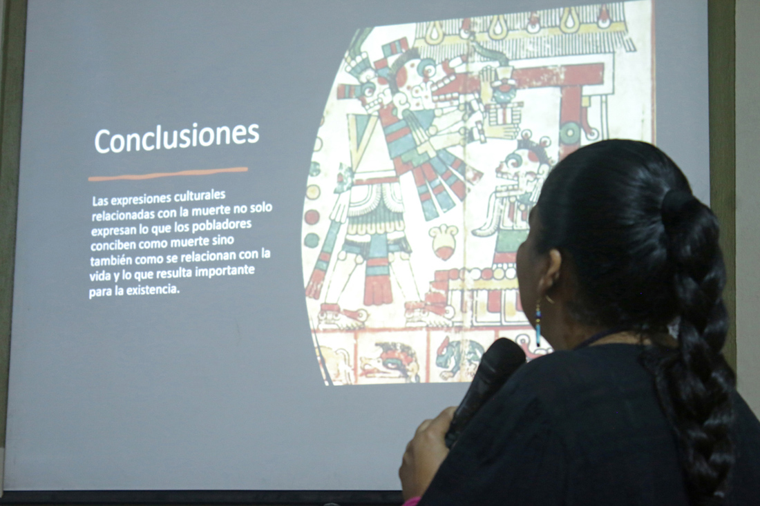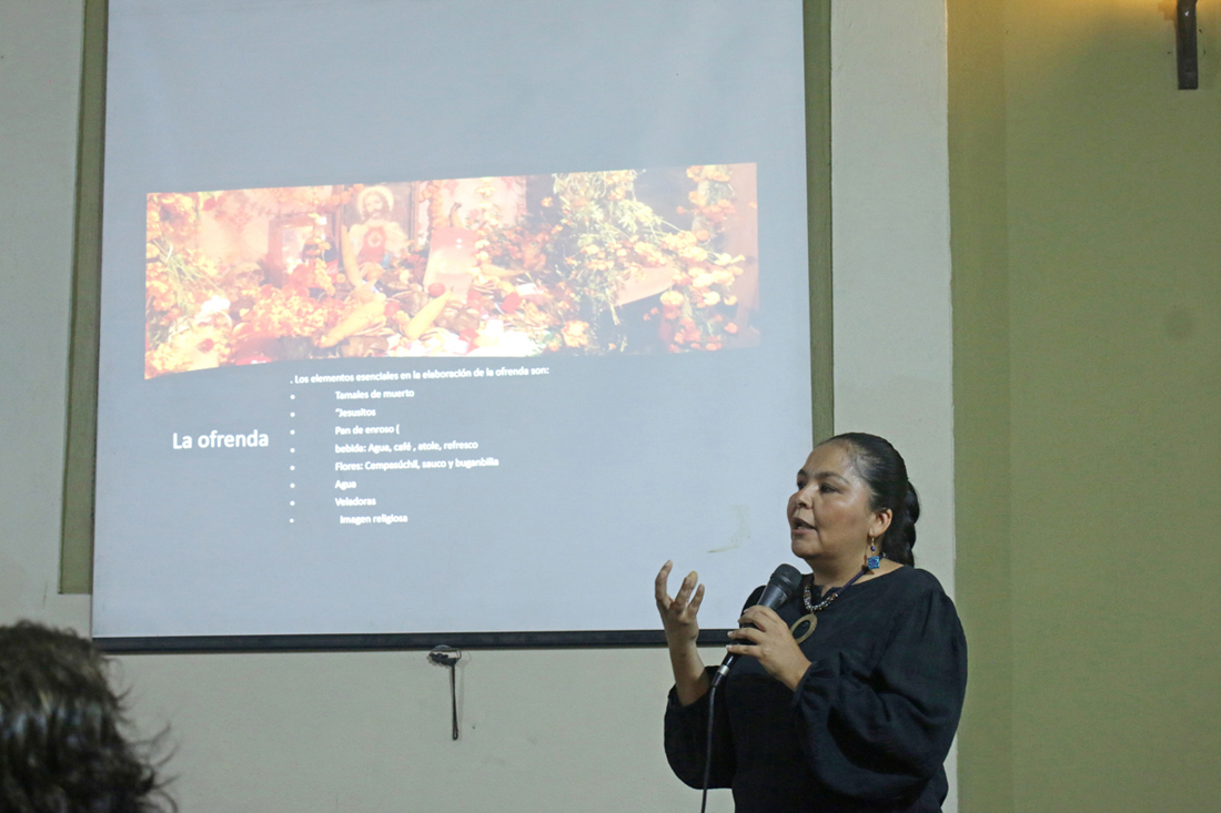 En su disertación, la también profesora de la Universidad de Colima señaló que, durante sus trabajos de investigación sobre este tema en comunidades indígenas colimotas como Zacualpan, Ixtlahuacán o Zacualpan, ha detectado dos aspectos muy reconocibles: el primero es que sus pobladores se autor reconocen como pueblos indígenas y en segundo, que sus prácticas culturales relacionadas con la religiosidad, alimentación, música y danza, están profundamente enraizadas a los tiempos de Mesoamérica. “Este origen está muy presente en todas las festividades de día de muertos”.