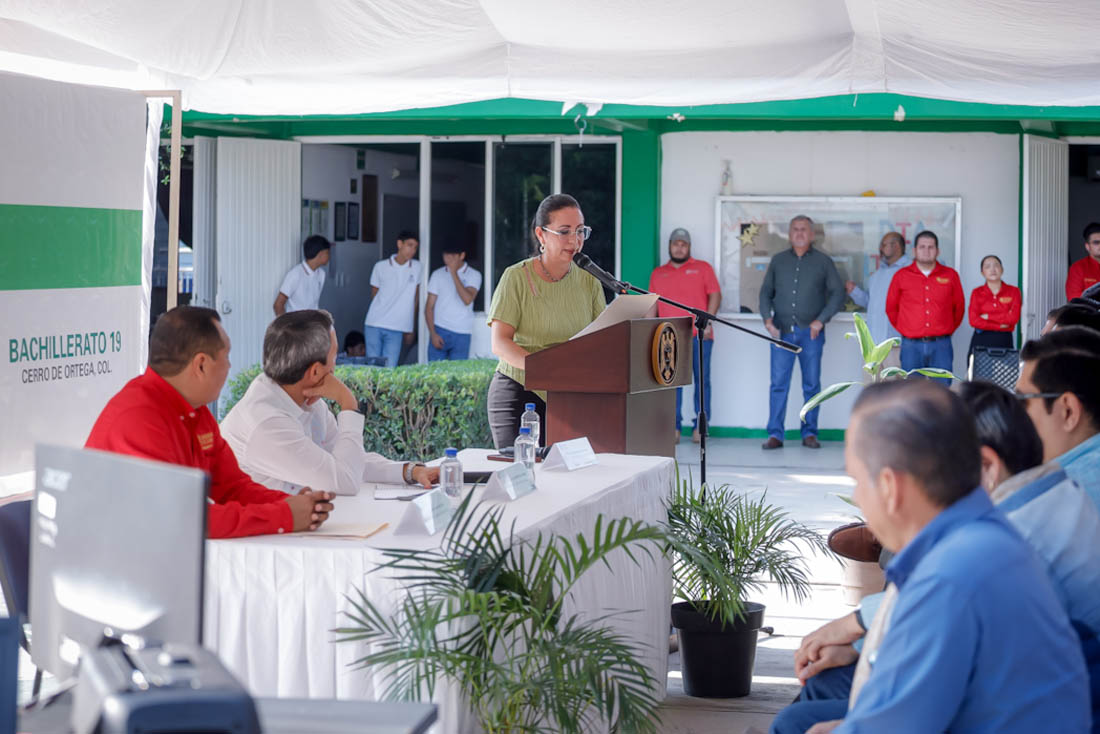 El primer informe correspondió al Bachillerato 19, ubicado en la comunidad de Cerro de Ortega, a cargo de la directora Rocío de Jesús Moreno Meza, quien destacó que el plantel ofrece los programas de Técnico en Contabilidad y Bachillerato General. Atienden en el ciclo actual a 222 estudiantes, de los cuales 121 cursan la formación técnica y 101 el bachillerato general.