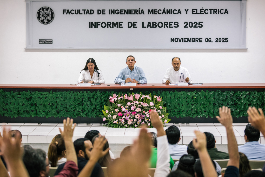 Luego de escuchar el informe, el rector Christian Torres Ortiz felicitó al director de la FIME en presencia de la comunidad universitaria, estudiantes, docentes, directivos y consejo técnico. “Has hecho un extraordinario papel, y a nombre de la Universidad quiero darte las gracias a ti y a todo tu equipo de trabajo por la extraordinaria labor al frente de esta facultad. Ser director es una experiencia de vida donde se aprende mucho, te enriquece, forma y da muchas tablas para seguir adelante en cualquier tipo de responsabilidad”.