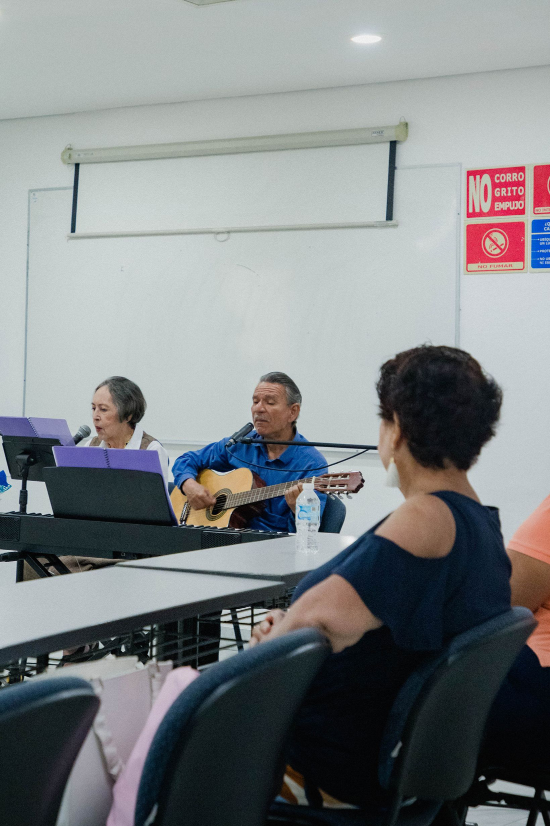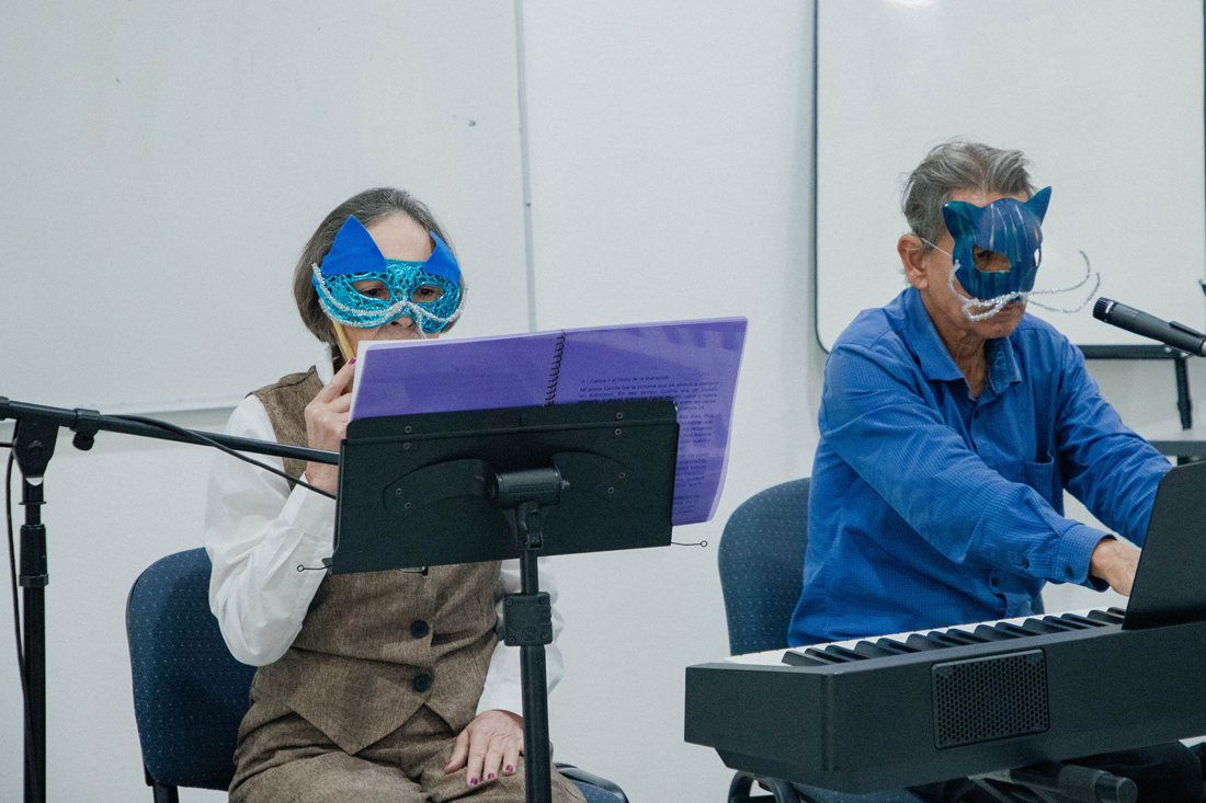 La tercera sesión de “Aulas culturales para mayores, Tecomán”, se desarrolló en la sala de usos múltiples del Centro de Tecnología Educativa del campus La Estación de la Universidad de Colima. En esta ocasión, la poeta Guillermina Cuevas y el músico y compositor Jorge Hernández (conocido como “Centavo” en el ambiente artístico), ofrecieron el espectáculo “¡Ay, marecito mío!”. Posteriormente, la actriz y dramaturga Carmen Solorio presentó el taller “Verte para mirarnos”.