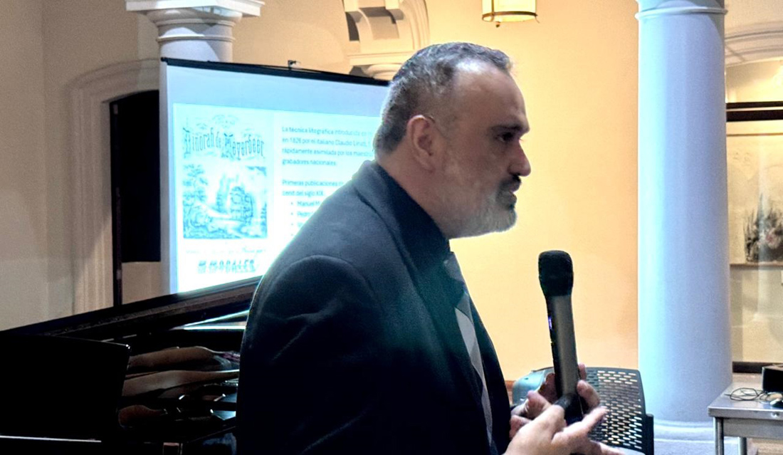 Durante la conferencia, el maestro Rogelio Álvarez explicó cómo fue que se logró el rescate de algunas partituras impresas en México durante los siglos XIX y principios del XX, así como el arduo trabajo de localización, catalogación y rescate de estas varias piezas creadas por músicos mexicanos que dejaron testimonio del paisaje sonoro de la época que les tocó vivir.