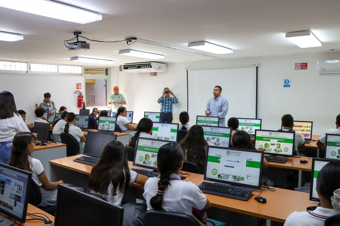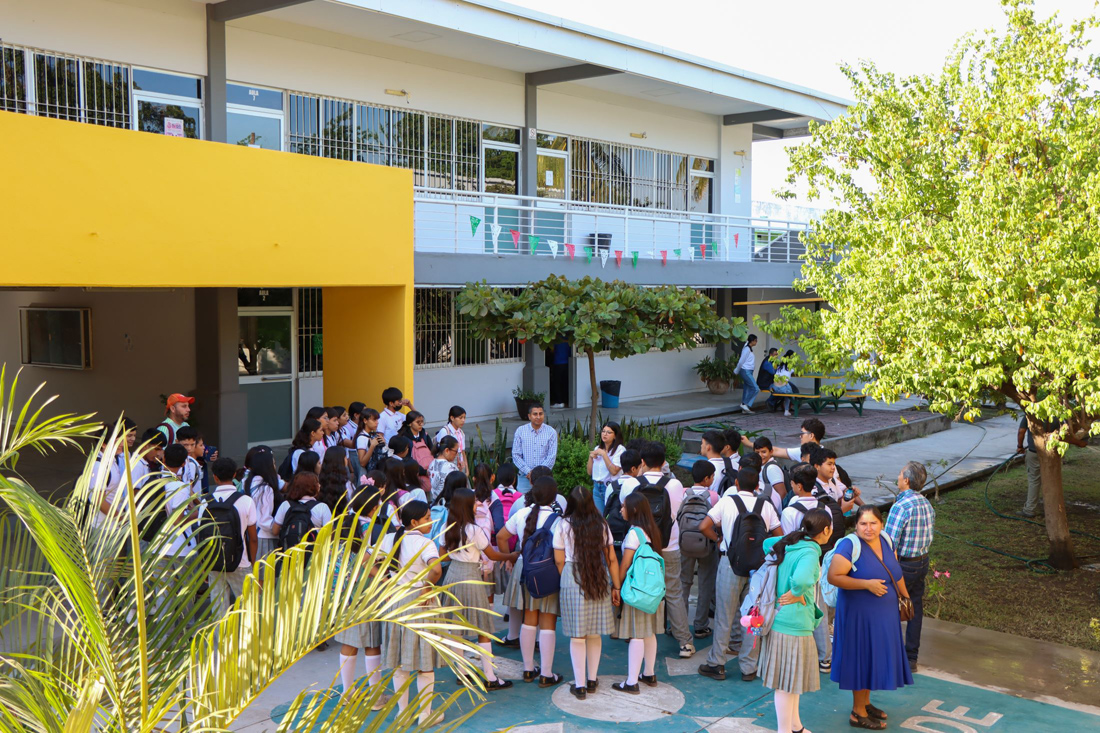 Con el propósito de acercar a las y los jóvenes a las opciones de formación que ofrece la Universidad de Colima en los niveles medio superior y superior, estudiantes de la Escuela Secundaria “Adalberto Torres Gaytán”, ubicada en la colonia La Estación, realizaron una visita guiada al campus Tecomán, donde conocieron la oferta académica del Bachillerato 35, así como de las facultades de Ciencias Biológicas y Agropecuarias (FCBA), Medicina Veterinaria y Zootecnia (FMVZ), y Contabilidad y Administración de Tecomán (FCAT).