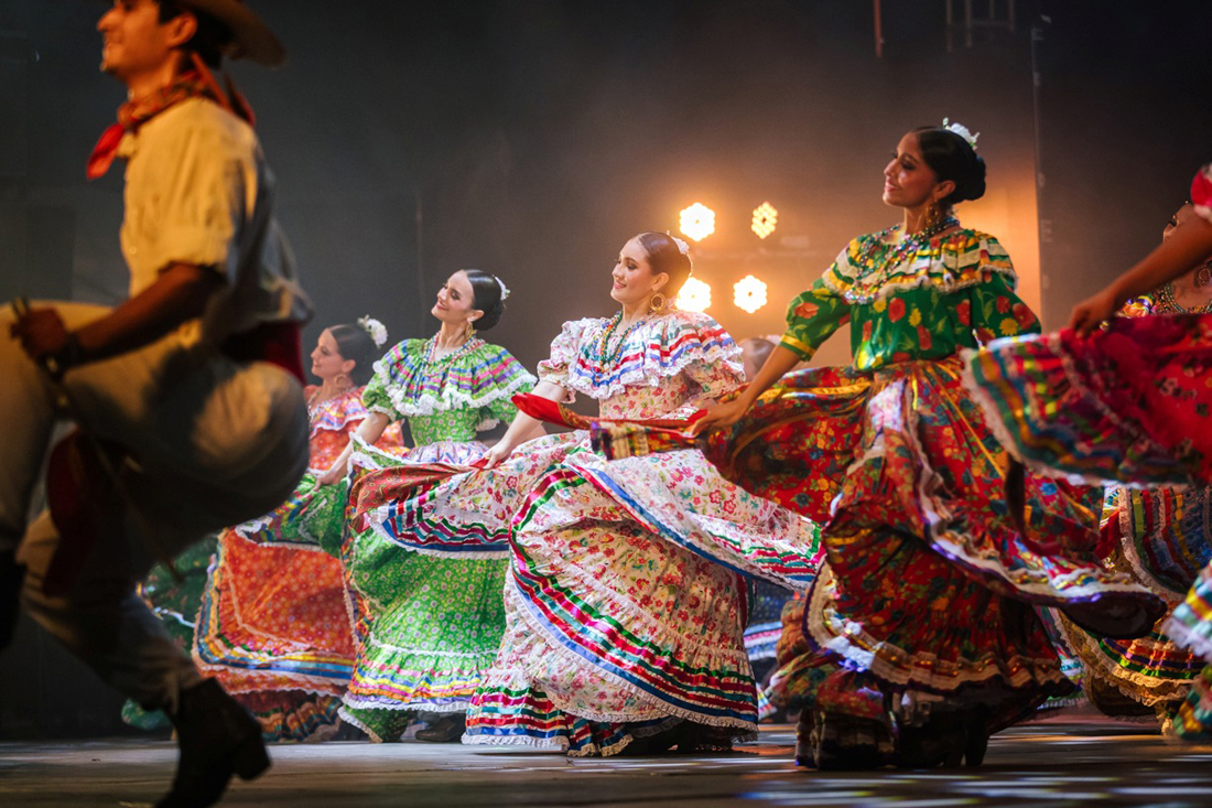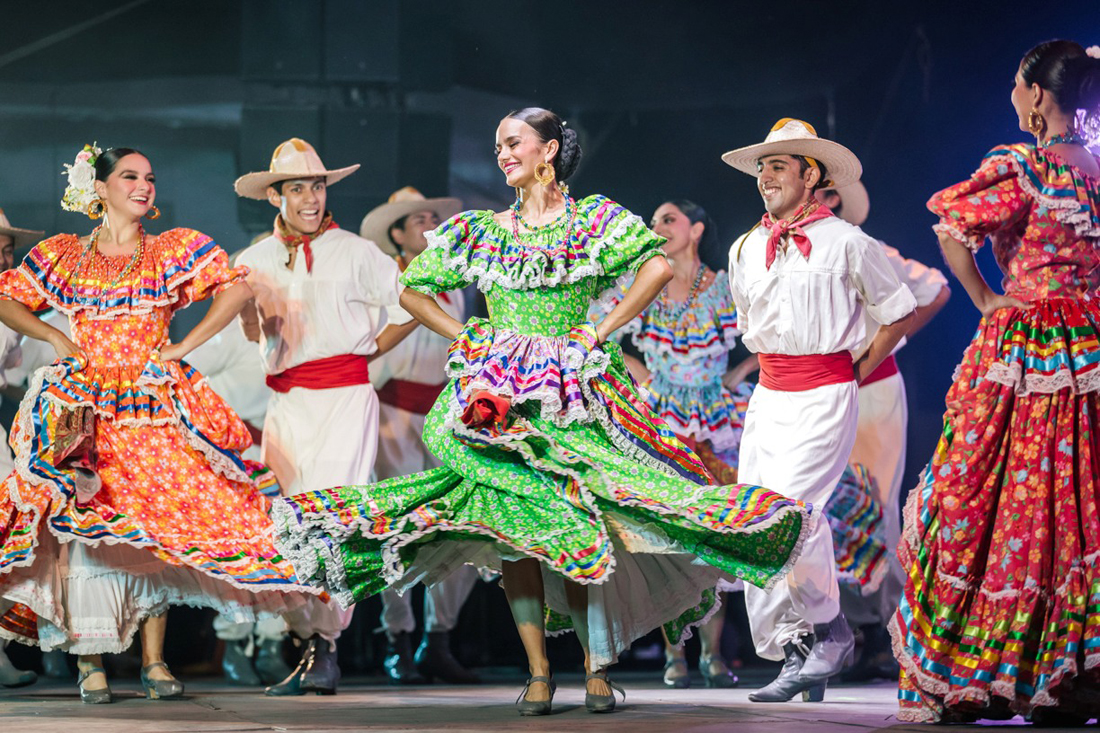 Por casi dos horas, el Ballet Folklórico de la Universidad de Colima mantuvo atentos y maravillados a cientos de espectadores que se dieron cita este miércoles por la noche en el jardín central de Coquimatlán. Con cuadros como Juegos de magia y muerte, Fiesta del acabo, Veracruz, Jalisco y el Corrido de Rosita Alvírez, el Ballet se presentó como parte de los festejos por el 85 aniversario de la Universidad de Colima, y de las actividades del 8º Festival Internacional Coximatlán 2025.