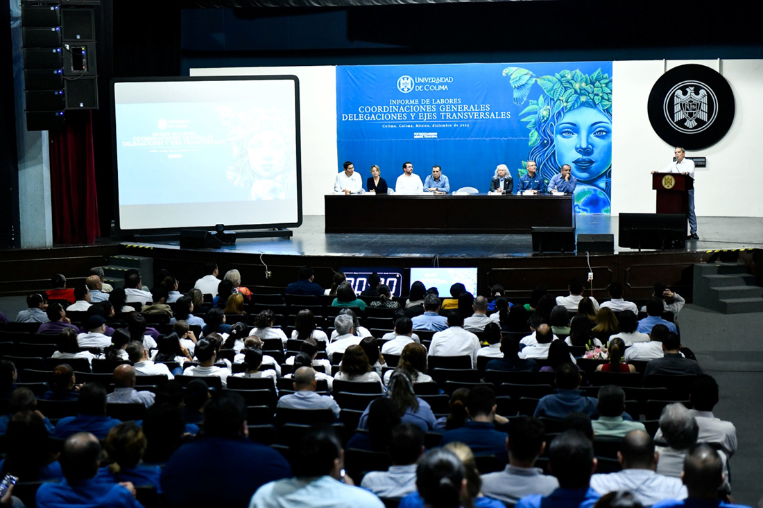 Entre otros muchos datos, informó que actualmente 3,724 trabajadoras y trabajadores conforman la planta laboral de la Universidad de Colima, “una comunidad con talento y vocación que permite ofrecer una educación pertinente y de excelencia”.