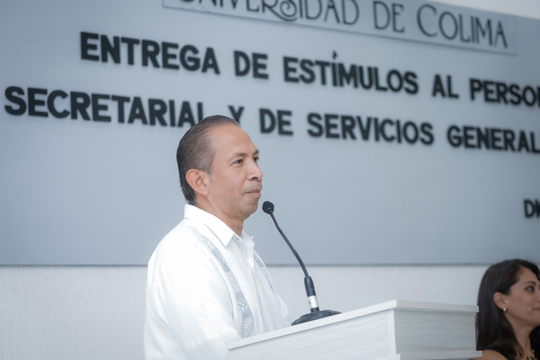 La entrega del estímulo está basada en lo establecido en la cláusula 64 del Contrato Colectivo de Trabajo vigente, la cual estipula un reconocimiento a 50 secretarias y a 50 trabajadores de servicios generales. Sin embargo, a partir del 2023, entre la Universidad de Colima y el Sindicato han venido incrementando esa cantidad. El año pasado fueron 60 y 60 y ahora 65 y 65.