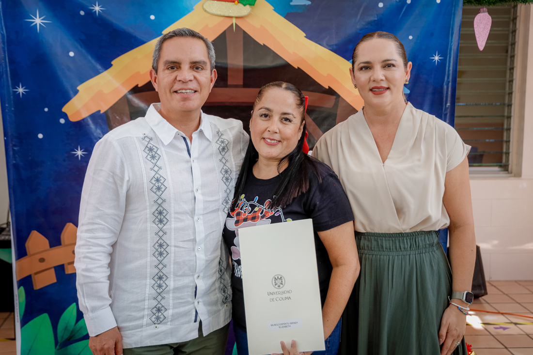 “Cada uno de nosotros representa una pieza fundamental para el buen funcionamiento de nuestros centros de trabajo, contribuyendo día a día a crear un ambiente ordenado, digno, profesional y humano. La Universidad de Colima es, sin lugar a duda, nuestro segundo hogar, un espacio donde compartimos tiempo, esfuerzo, sueños, experiencias y amistades que nos formen como comunidad, como una gran familia universitaria, de la cual me siento muy orgullosa de pertenecer”, concluyó.