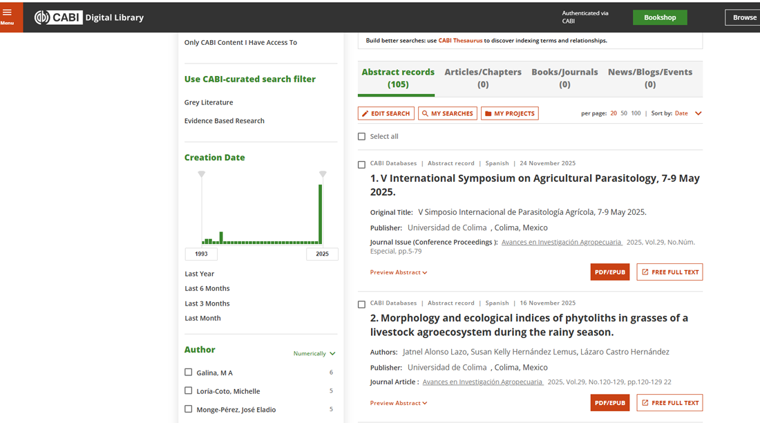 La revista “Avances en Investigación Agropecuaria” de la Facultad de Ciencias Biológicas y Agropecuarias, editada por la Universidad de Colima, ingresó el pasado mes de mayo a la biblioteca digital de CABI (Commonwealth Agricultural Bureaux International), una organización intergubernamental con sede en Reino Unido, dedica a la investigación y desarrollo de investigaciones científicas, así como a la creación e integración de productos editoriales, servicios de investigación y herramientas de apoyo de las ciencias agrícolas.
