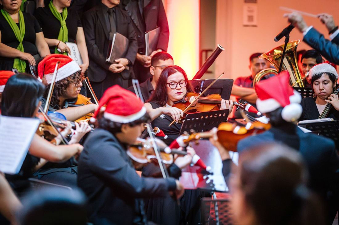 Finalmente destacó el talento, la disciplina y el compromiso de todos los jóvenes que integran la orquesta y que se suman a otras propuestas artísticas de gran calidad que tiene la Universidad en disciplinas como la danza y el teatro. “Tuvimos una actividad intensa durante los últimos seis meses, consolidando la agrupación como orquesta sinfónica y, además, ofreciendo conciertos temáticos por las fiestas patrias, por el día de muertos y esta noche, cerrando con broche de oro con nuestro concierto navideño”.