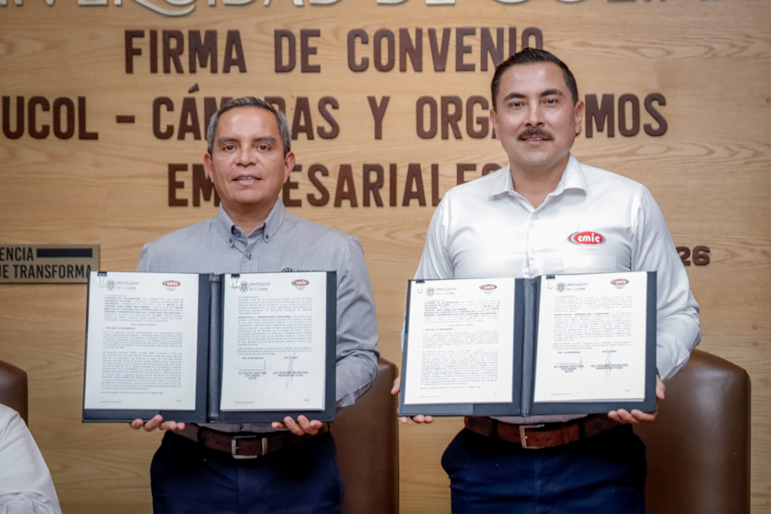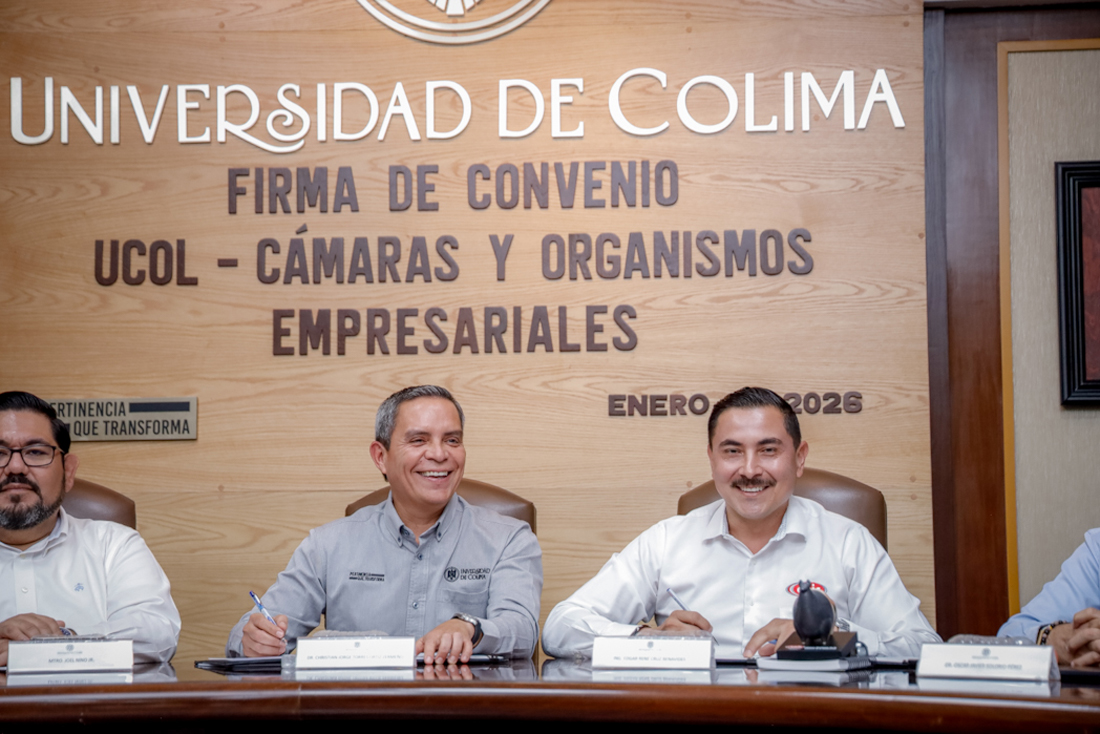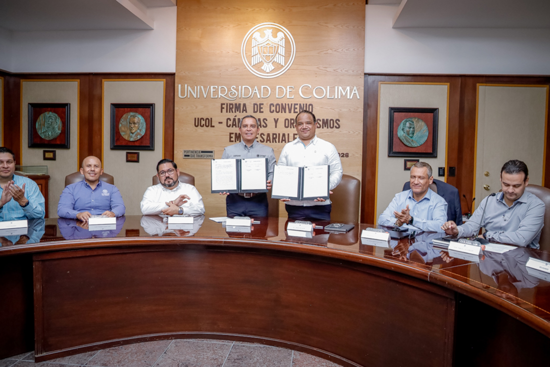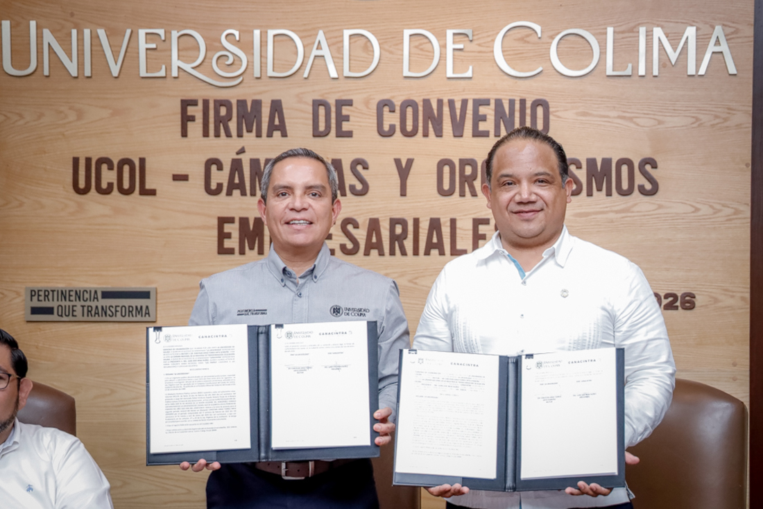 Este miércoles, en actos por separado, se llevaron a cabo dos firmas de convenio. La primera fue entre la Universidad de Colima y la Cámara Mexicana de la Industria de la Construcción (CMIC) y la segunda entre la UdeC y la Cámara Nacional de la Industria de Transformación (CANACINTRA). Ambas en la sala de juntas de rectoría.