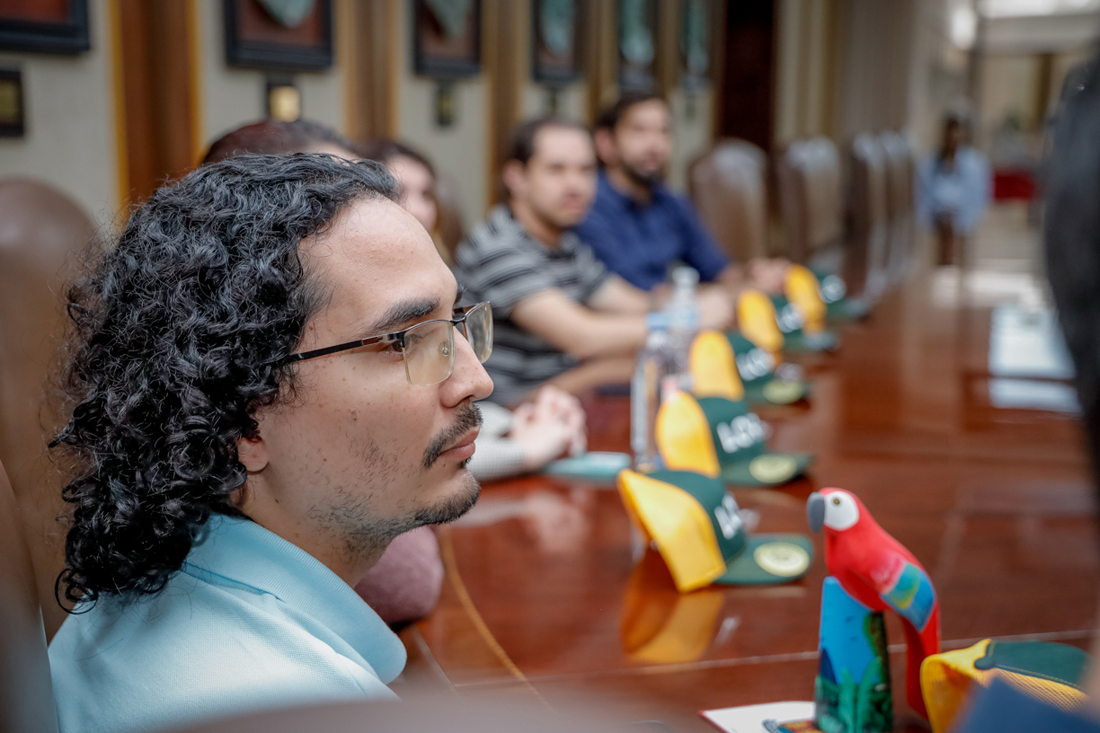 Los recibió el rector de la Universidad de Colima, Christian Jorge Torres Ortiz Zermeño, en la sala de juntas. El rector les aseguró que su estancia será enriquecedora y que es el inicio de “una relación que tendrá continuidad en las universidades mexicanas”.