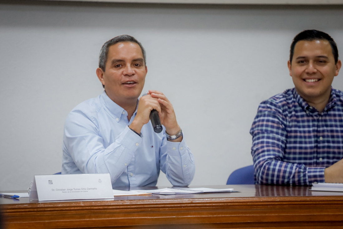 Acompañó al rector en presídium Jaime Alejandro Novela Castañeda, presidente de la Federación de Estudiantes Colimenses (FEC), quien agradeció a los jóvenes asistentes, así como la apertura al diálogo por parte del rector. “Valoramos mucho su presencia, pues con ello nos transmite la cercanía, preocupación y sobre todo su ocupación, con hechos, en los diversos temas que involucran a las y los estudiantes”.