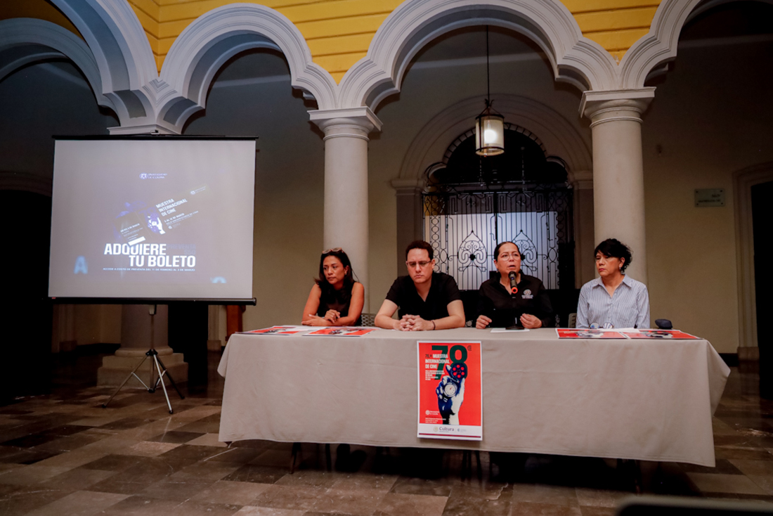 En rueda de prensa realizada en la Pinacoteca Universitaria, Claudia Morales Zenteno, directora de Museos y Acervo Cultural de la Universidad y Camilo Gutiérrez Galván, encargado de Programación y Acervo de la Filmoteca Universitaria, dieron a conocer la programación para Colima.
