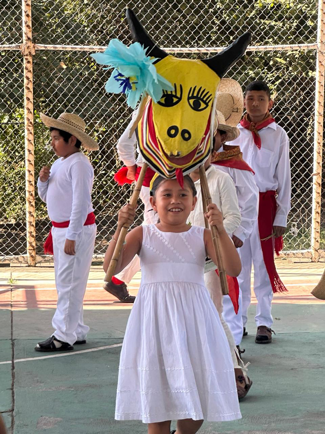 Asimismo, se integraron al recorrido por la comunidad, entonando los cantos característicos de los Paspaques y compartiendo el pinole, gesto que simboliza la transmisión de alegría y bendiciones entre las y los participantes.