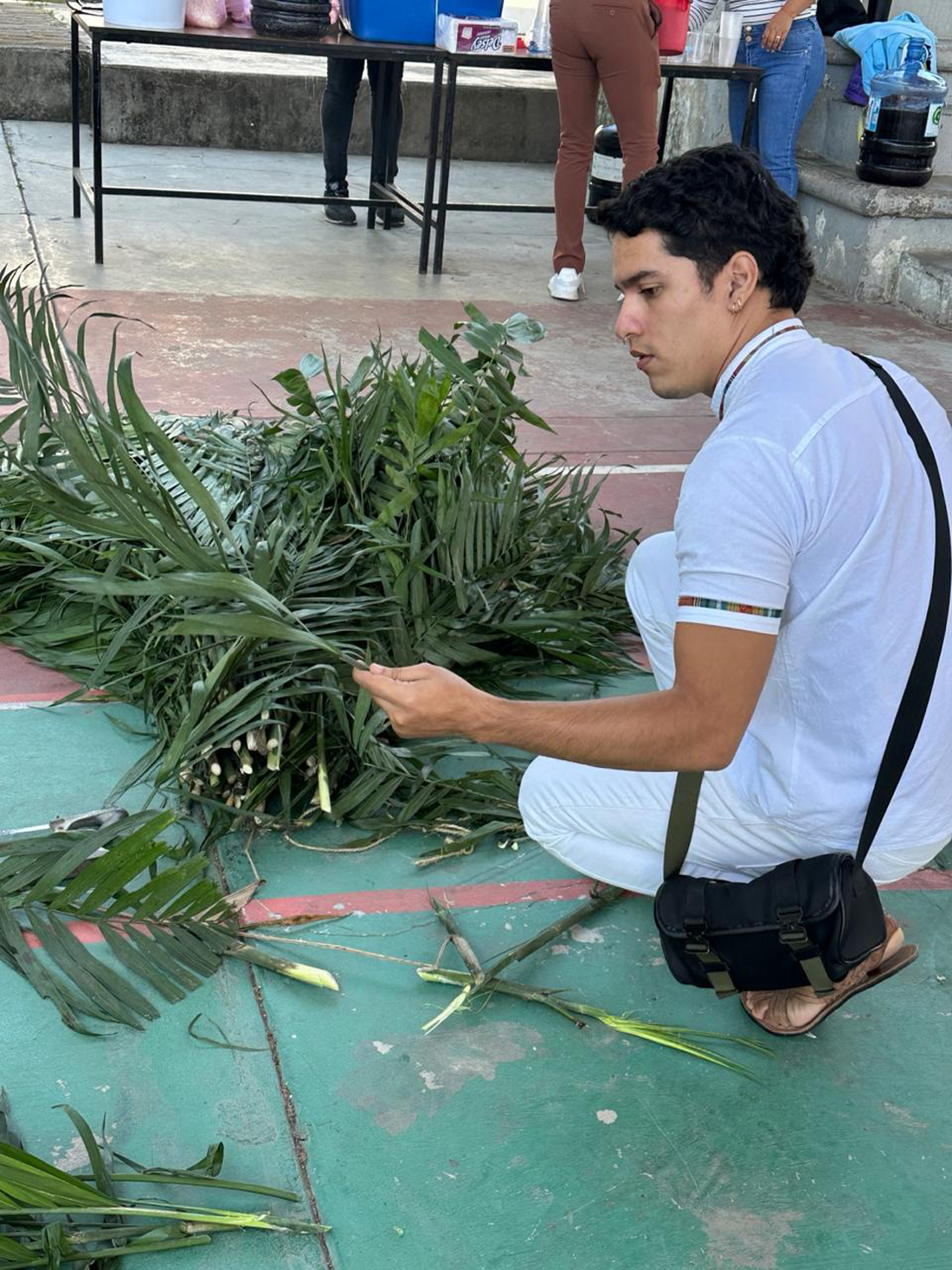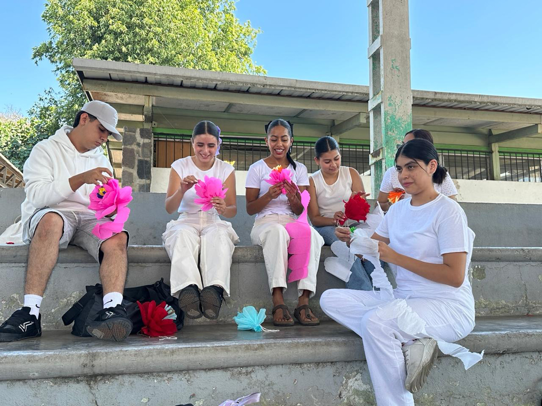Durante su estancia, las y los estudiantes colaboraron en diversas actividades asignadas por las autoridades festivas. Participaron en la elaboración de elementos simbólicos como los “zuales” (bolas de maíz con piloncillo), así como en la preparación del arco o retablo donde se colocan imágenes religiosas y flores de papel crepé que forman parte de la ornamentación tradicional.