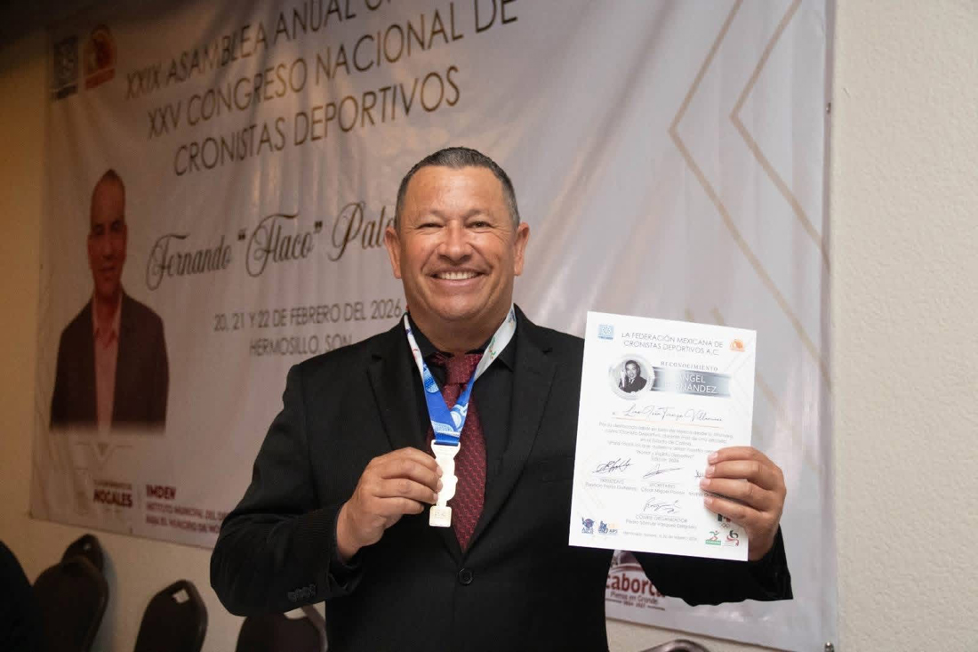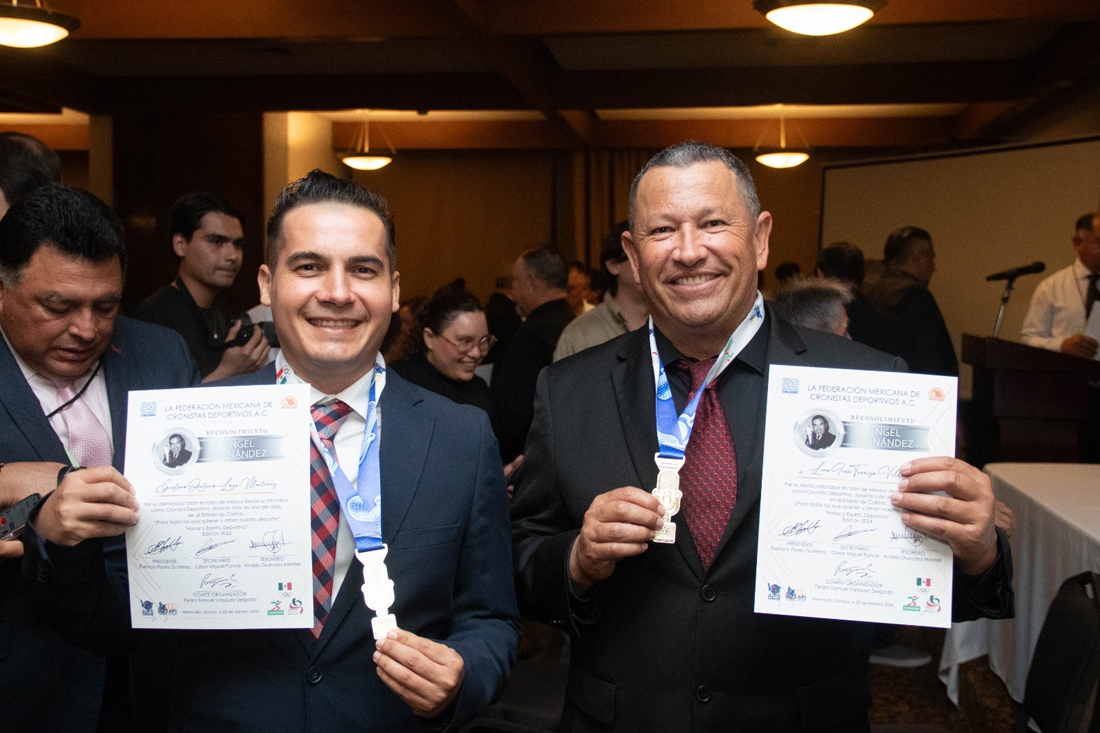 Durante la XXIX Asamblea Anual Ordinaria y el XXV Congreso Nacional, realizados en Hermosillo, Sonora, este fin de semana, la Federación Mexicana de Cronistas Deportivos (FEMECRODE) distinguió a dos cronistas de la Universidad de Colima con el premio “Ángel Fernández”, galardón que reconoce más de una década de trayectoria en los medios de comunicación deportiva.