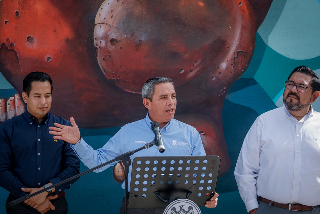 Este lunes por la mañana fue inaugurado el mural que dará la bienvenida a las y los más de 3 mil estudiantes y trabajadores de la Universidad de Colima al campus Coquimatlán. El mural, llamado “Territorio Loro” fue inaugurado por Christian Torres Ortiz Zermeño, rector de nuestra Casa de Estudios. Se trata -comentó- de una expresión artística que refleja identidad, pertenencia y el compromiso universitario con su entorno.