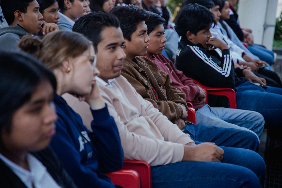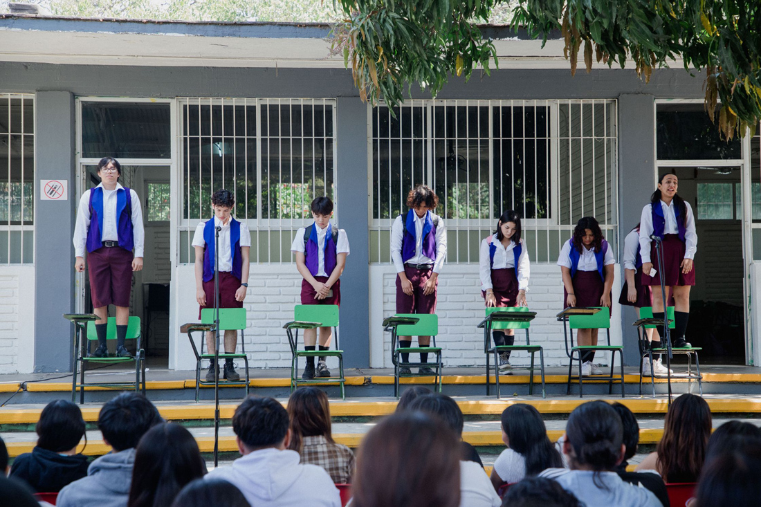 Entre risas, suspiros y miradas angustiadas por el desarrollo de la obra, las y los estudiantes del Bachillerato 32 mantuvieron la atención en el diálogo y las actuaciones. En los momentos críticos de la obra, fue posible notar los cambios de humor entre el público.