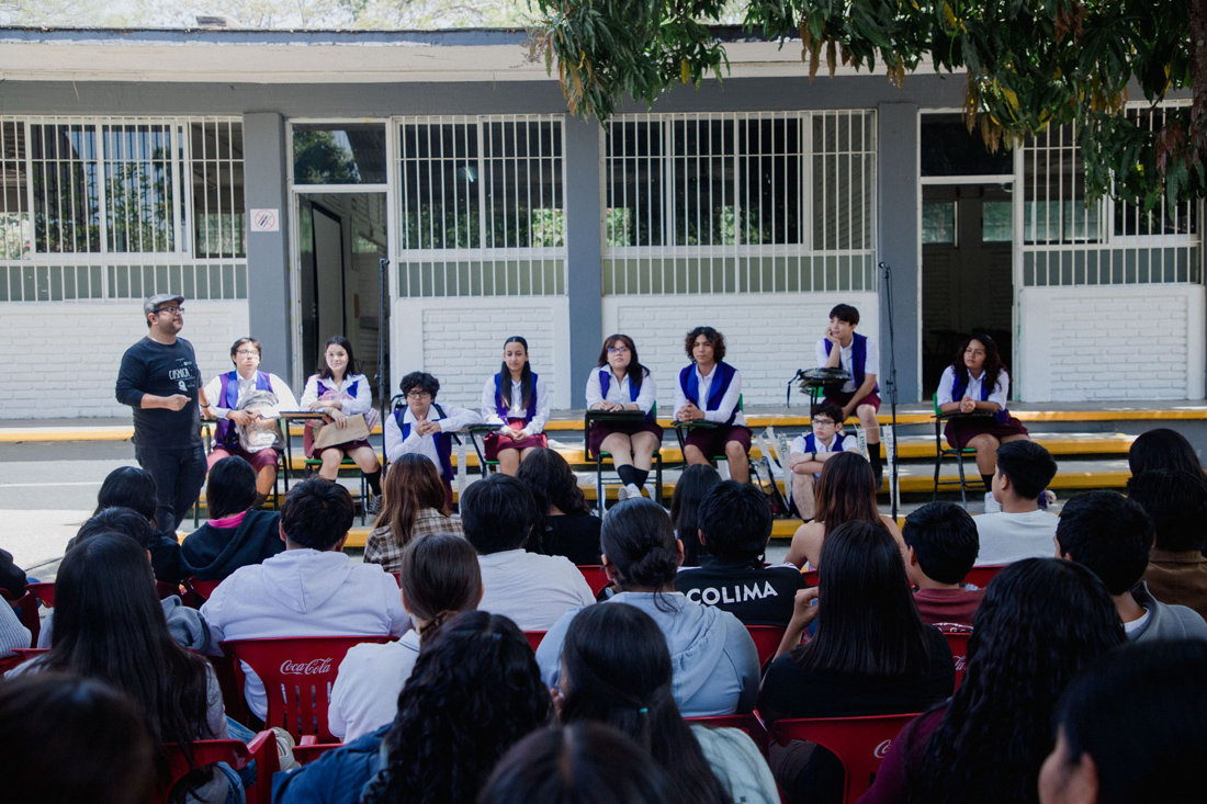 Durante su presentación en Suchitlán, el director del plantel, Eder Eusebio Pérez Reynaga, expresó su agradecimiento a la Dirección General de Difusión Cultural, por hacer que estas propuestas artísticas lleguen a la comunidad universitaria de ese lugar.