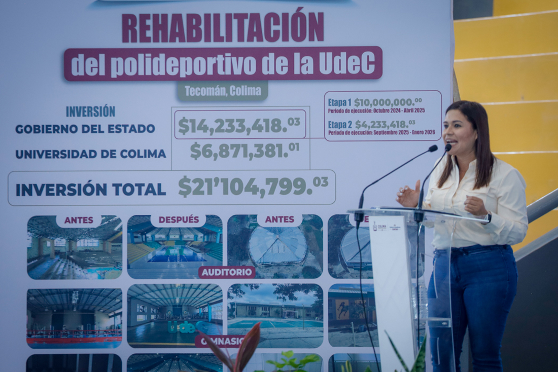 Precisó que el Gobierno del Estado aportó 14 millones 233 mil 418.03 pesos, provenientes de recursos cien por ciento estatales, mientras que la Universidad de Colima invirtió 6 millones 871 mil 381.01 pesos, para una inversión total de 21 millones 104 mil 799.03 pesos en la rehabilitación del complejo deportivo del Campus Tecomán.