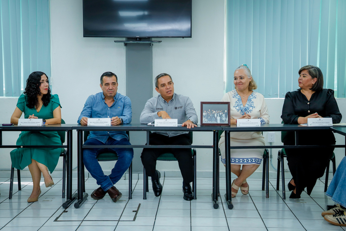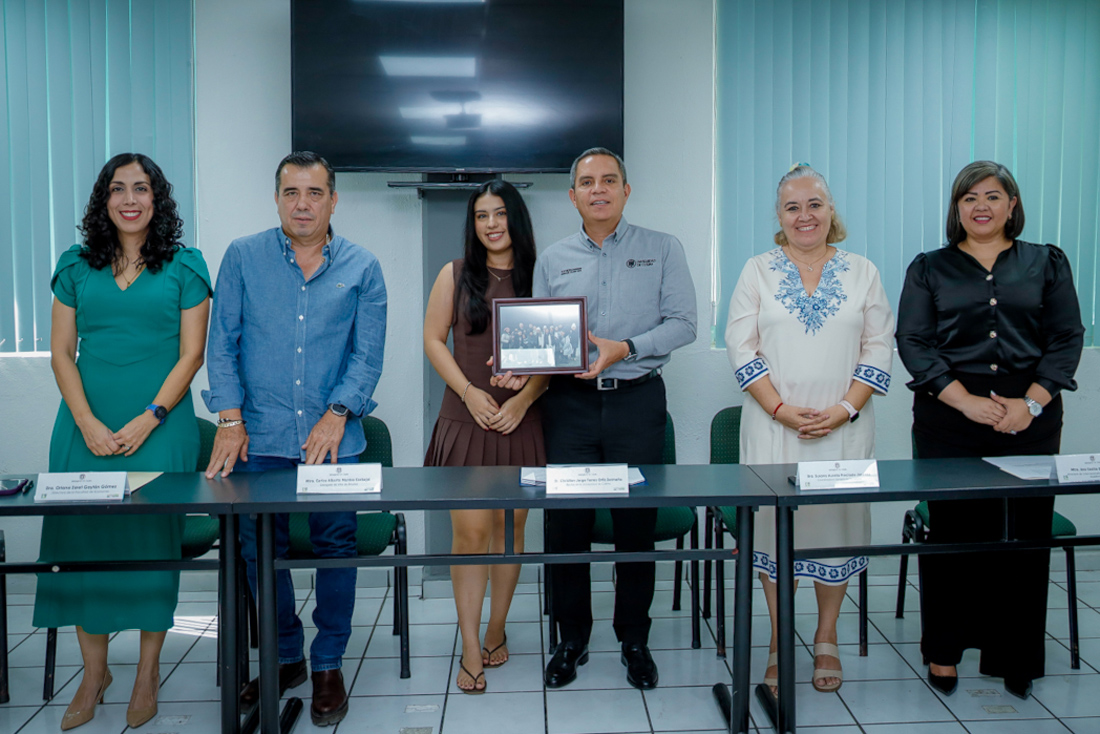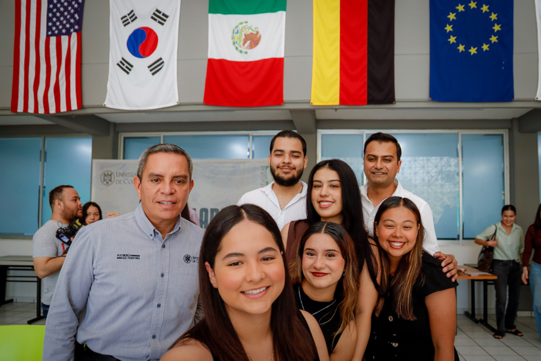 Estuvieron con el rector: Carlos Montes Carvajal, delegado de Villa de Álvarez; Susana Preciado Jiménez, coordinadora general de Docencia, Cecilia García Valencia, directora de la Oficina Internacionalización y Cooperación Académica; Zaret Gaytán Gómez, directora de la Facultad de Economía, Ángel de Jesús Bayardo, profesor de este plantel y, de manera virtual, Alejandra Balleza desde Alemania.